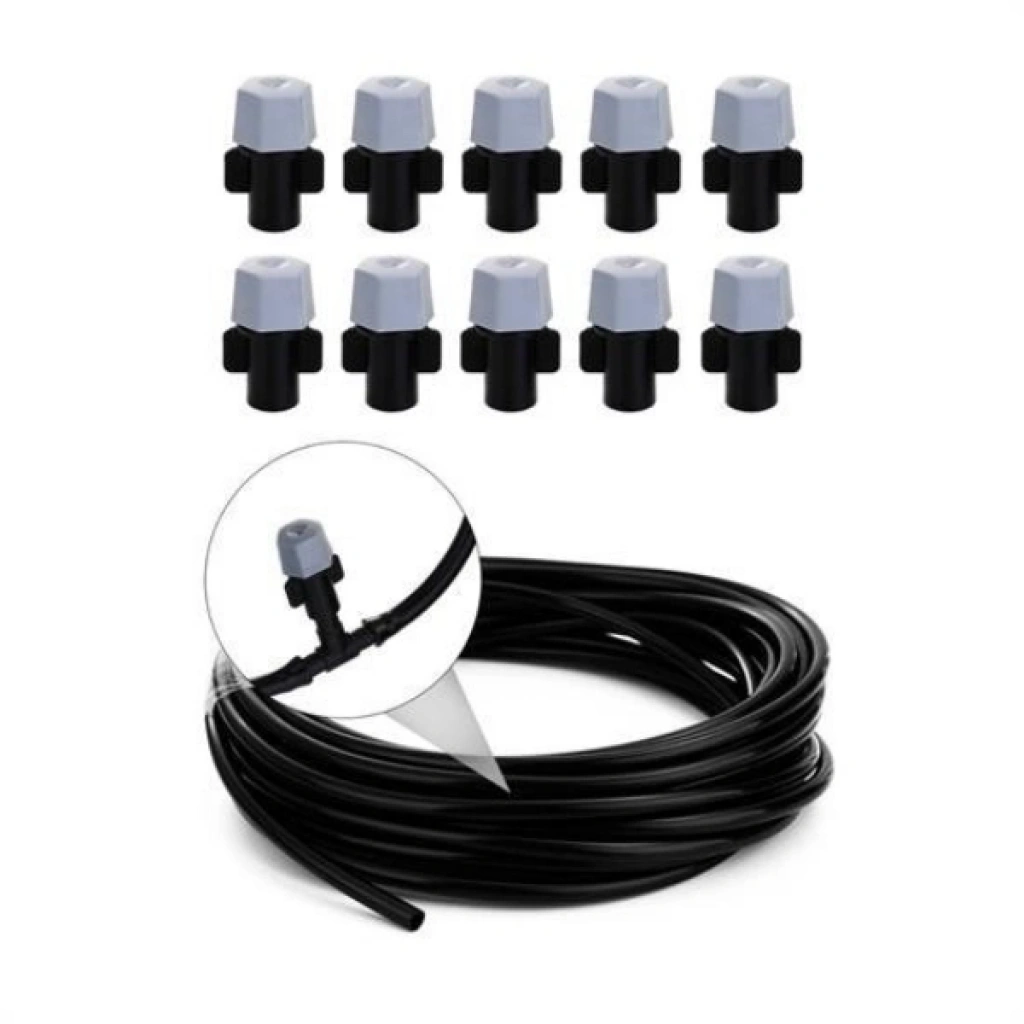 10 METRE KENDİN YAP AÇIK ALAN SERİNLETME VE NEMLENDİRME SİSTEMİÜrün Özellikleri10 metre kendin yap açık alan serinletme ve nemlendirme sistemi, sıcak havalarda açık alanlarda ferahlatıcı bir ortam oluşturmak için tasarlanmış pratik ve etkili bir çözümdür. Sistem üzerinde 1 metre aralıklarla konumlandırılmış toplam 10 adet püskürtme ucu bulunur ve bu yapı sayesinde geniş alanlara dengeli şekilde ince su buharı yayılır. Damla sulama mantığıyla çalışan özel tasarımlı nozullar, tıkanmayı önlemeye yardımcı olan dahili filtreye sahiptir ve uzun süreli kullanımda performansını korur. Kolay temizlik için çıkarılabilir nozzle yapısı sayesinde bakım işlemleri zahmetsizdir. Tarım alanları, çim ve bahçeler, avlular, seralar, yüzme havuzu çevreleri, çardaklar ve asma altları gibi birçok açık alanda hem serinletme hem de nemlendirme amacıyla kullanılabilir. Kendin yap kurulum yapısı sayesinde hortumdan kesme, ekleme ve bağlantı işlemleri basit adımlarla tamamlanır ve mevcut musluk sistemlerine kolayca uyum sağlar. Açık alanlarda konforu artıran bu sistem, yaz aylarında hem bireysel hem de ticari kullanımlar için idealdir.Paket İçeriği10 metre kurulumu yapılmış serinletme ve nemlendirme hortumu1 adet yedek nozzle2 adet yedek ekleme aparatı5 adet plastik kelepçe1 adet hortum adaptörü