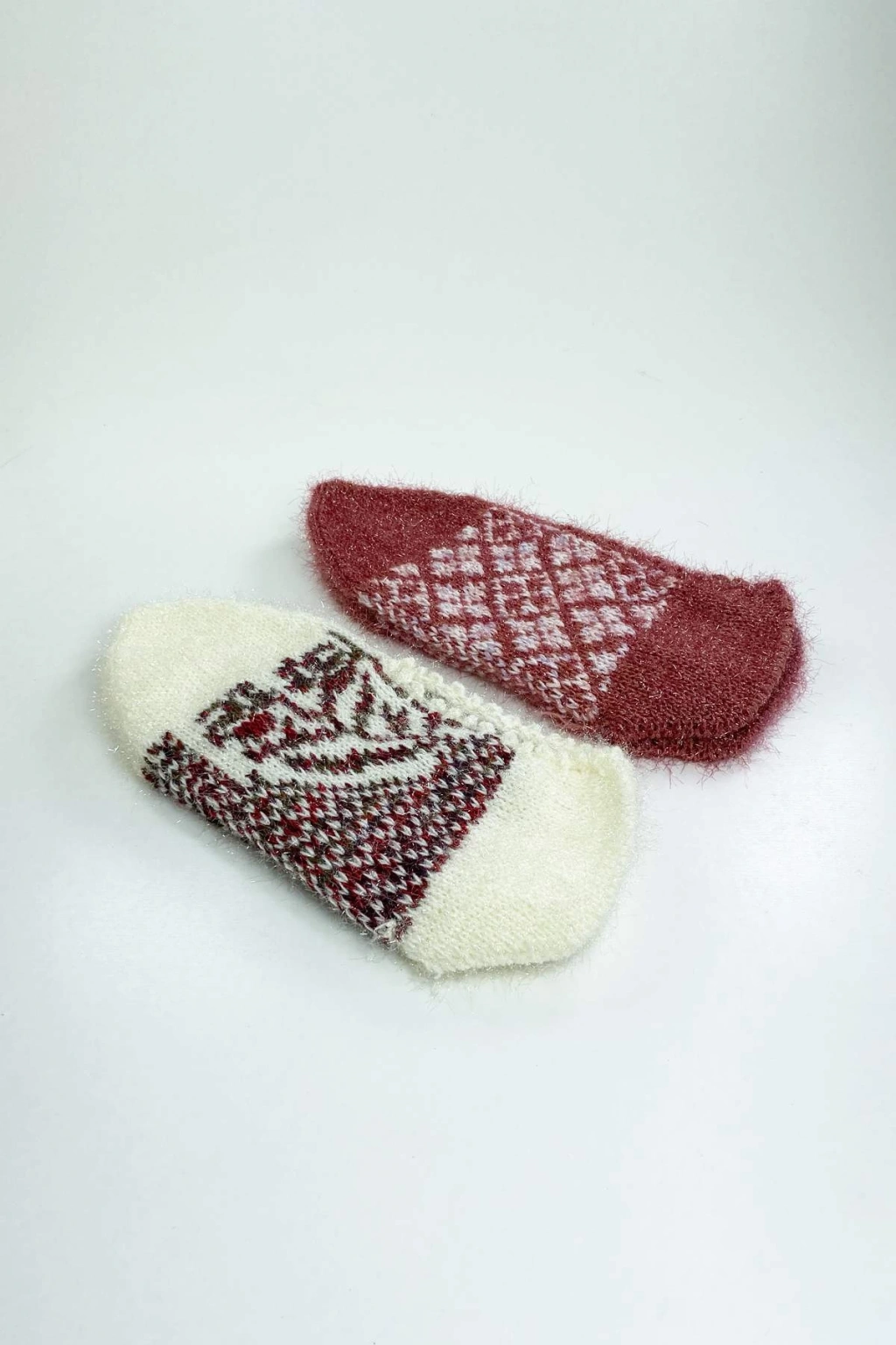 2 Çift El Örgüsü Kışlık Şık Kadın Yün Patik Set 2