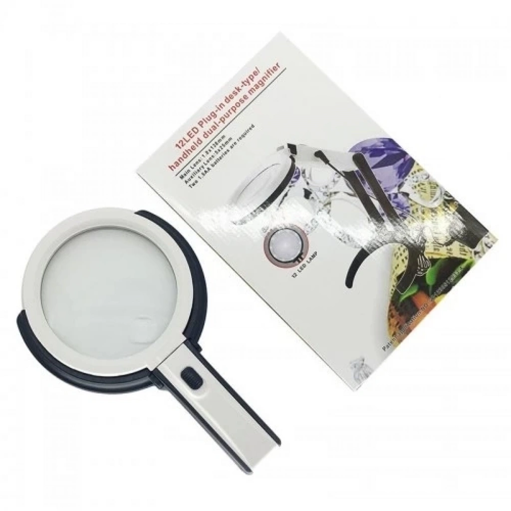 30x 12ışıklı Büyüteç Taşınabilir Çıft Katmanlı Optik Cam Okuma Büyüteç 229018