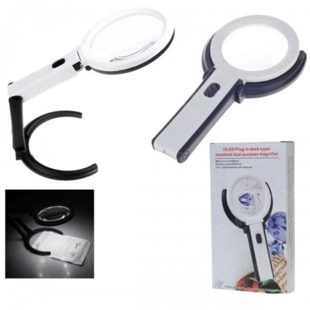 Masaüstü 10x Led Işıklı Büyüteç Okuma El Sanatları Onarım Büyüteç 7765