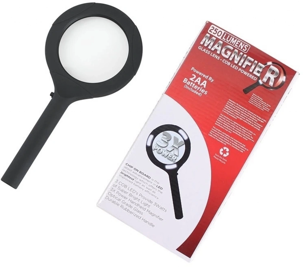 3 Ledli Işıklı El Büyüteci 250 Lümen Beyaz Işık Büyüteç 3x Zoom Tamirci Büyüteç Wt374