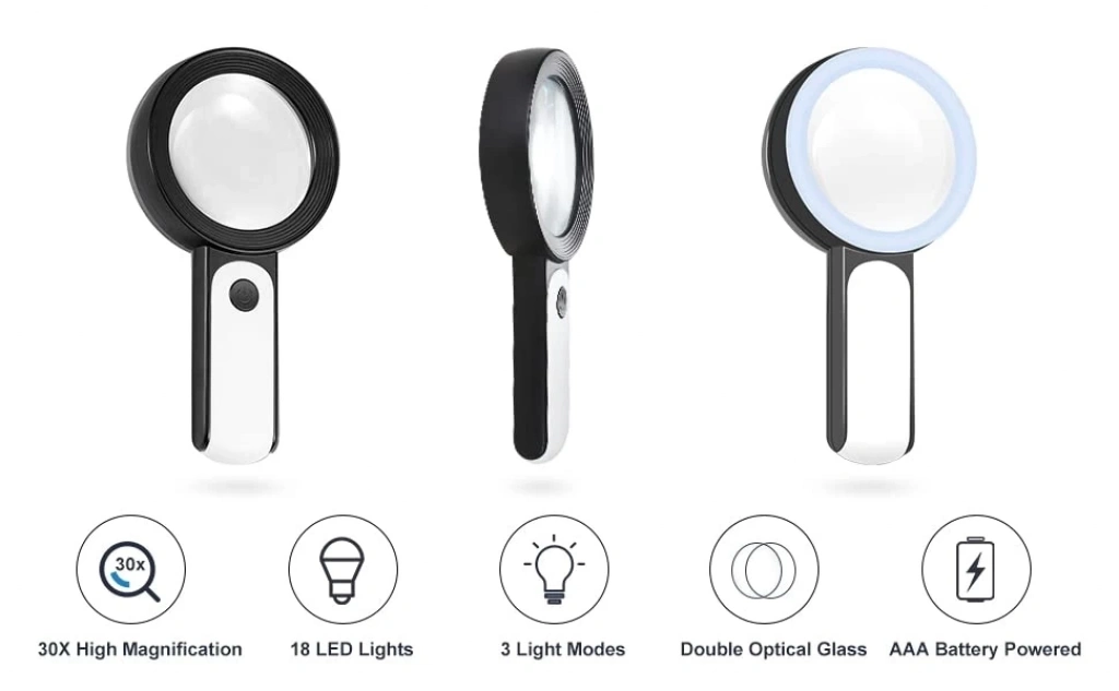 30x 12ışıklı Büyüteç Taşınabilir Çıft Katmanlı Optik Cam Okuma Büyüteç 229018