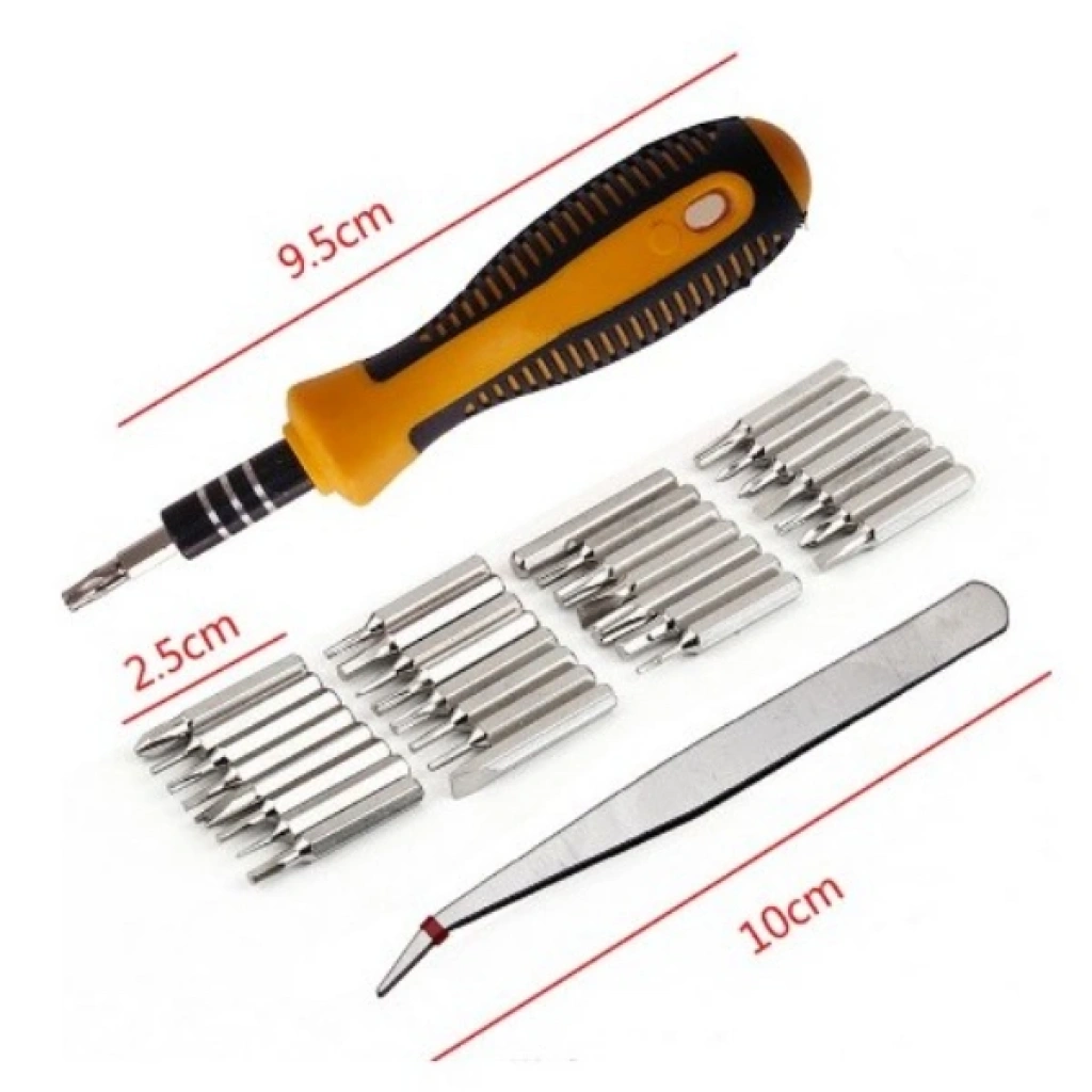 32 PARÇA TELEFON TAMİR MİNİ TORNAVİDA SETİÜrün Özellikleri32 Parça Telefon Tamir Mini Tornavida Seti, modern elektronik cihazların hassas tamir ve bakım işlemleri için tasarlanmış profesyonel bir yardımcıdır. Akıllı telefonlar, tabletler, dizüstü bilgisayarlar, saatler ve gözlükler gibi küçük vidalara sahip tüm hassas cihazlarda güvenle kullanılabilir. Set içerisinde yer alan 32 farklı uç, en yaygın kullanılanlardan en özel formlara kadar geniş bir yelpaze sunarak tamir süreçlerini kesintisiz hale getirir. Yüksek mukavemetli dayanıklı çelikten üretilen uçlar, aşınmaya karşı dirençlidir ve vidalara tam uyum sağlayarak yalama riskini en aza indirir. Ergonomik tutamak tasarımı, hassas işlemlerde maksimum kontrol ve kaymaz bir tutuş vaat eder. Kompakt ve taşınabilir saklama kutusu sayesinde tüm parçalar düzenli bir şekilde bir arada tutulur, bu da seti hem profesyonel teknik servisler hem de evdeki hobi çalışmaları için ideal bir hassas tornavida seti haline getirir. Test edilmiş ve onaylanmış kalitesiyle uzun ömürlü bir kullanım sunan bu set, dijital dünyadaki cihazlarınızın ömrünü uzatmak için ihtiyaç duyduğunuz tüm donanımı tek bir kutuda toplar.Ürün Teknik ÖzellikleriÖzellikAçıklamaÜrün Adı32 Parça Telefon Tamir Mini Tornavida SetiParça Sayısı32 Farklı Uç ve Ergonomik TutamakMalzemeDayanıklı Sertleştirilmiş Çelik UçlarKullanım AlanıTelefon, Laptop, Tablet, Saat, Gözlük TamiriTasarımKompakt, Taşınabilir ve Düzenli Saklama KutusuÖzellikYüksek Hassasiyetli ve Kaymaz TutamakKalite StandartıYüksek Kalite, Test Edilmiş ve OnaylanmışPaket İçeriği1 Adet Mini Tornavida Tutamağı, 32 Adet Değiştirilebilir Tornavida Ucu