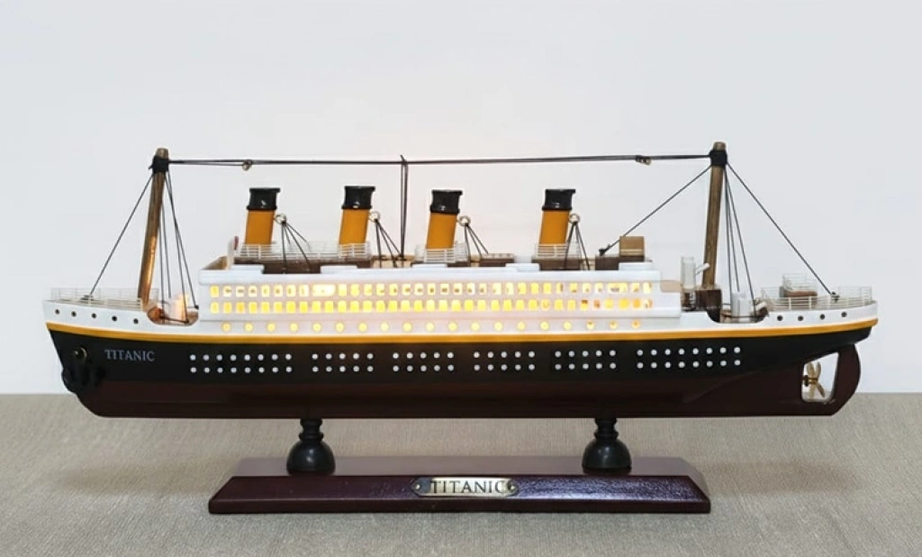35X45 CM ÖZEL TASARIM IŞIKLI AHŞAP TİTANİK GEMİÜrün Özellikleri35x45 cm Özel Tasarım Işıklı Ahşap Titanik Gemi, klasik transatlantik tasarımını detaylı işçilik ve dekoratif aydınlatma ile bir araya getiren şık bir koleksiyon parçasıdır. 35x45 cm ölçüsü sayesinde vitrin, konsol, makam masası ve ofis dekorasyonlarında dikkat çekici bir görünüm sunar. Ahşap gövde tasarımı ile estetik bir dekoratif gemi maketi olarak öne çıkarken, entegre aydınlatma özelliği ürüne etkileyici bir ışıklı dekor objesi görünümü kazandırır. Güverte ve baca detayları ile klasik Titanik formunu yansıtan model, bulunduğu ortama nostaljik ve prestijli bir hava katar. Ev ve ofis dekorasyonu için şık bir ahşap gemi modeli alternatifi olup koleksiyon amaçlı kullanım için de ideal bir seçenektir.Ürün Teknik Özellikleri Özellik Açıklama Ürün Adı 35x45 Cm Özel Tasarım Işıklı Ahşap Titanik Gemi Malzeme Ahşap Ölçü 35 x 45 cm Özellik Işıklı tasarım Kullanım Alanı Ev dekorasyonu, ofis, vitrin ve koleksiyon Paket İçeriği1 adet 35x45 cm Özel Tasarım Işıklı Ahşap Titanik Gemi