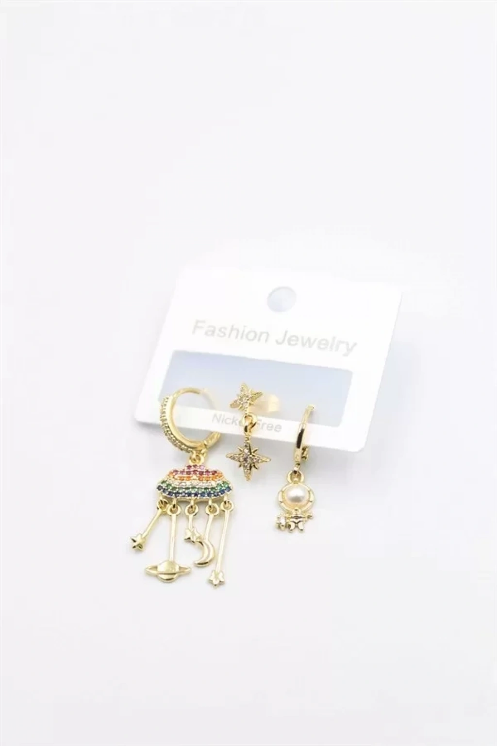 3'lü Bulut Küpe - Altın