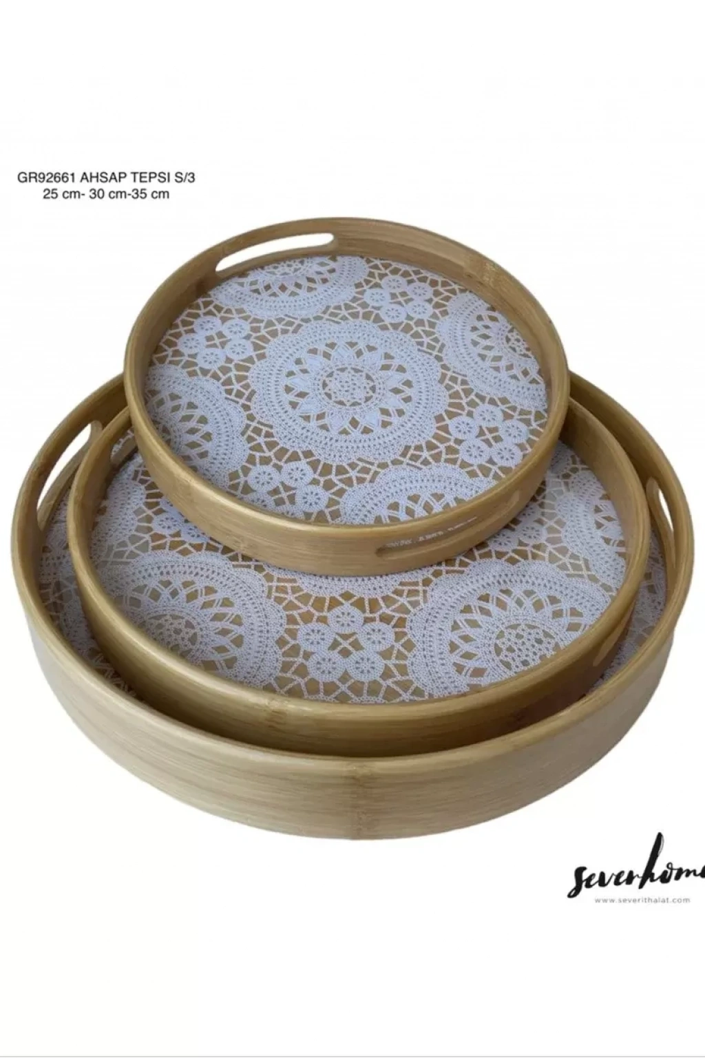 Paket İçeriği : 1 adet 3'lü Yuvarlak Ahşap Tepsi Royaleks-SVR-GR92661