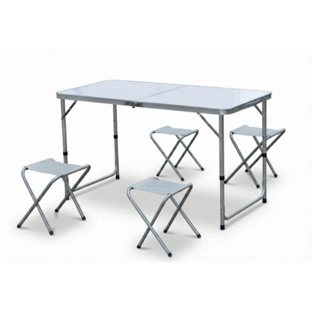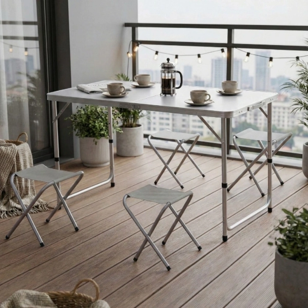 4 SANDALYELİ KATLANABİLİR MASA SETİÜrün Özellikleri4 Sandalyeli Katlanabilir Masa Seti, doğa tutkunları ve açık hava organizasyonları için tasarlanmış, pratikliği ve konforu bir arada sunan eksiksiz bir çözümdür. Akıllı "çanta tipi" tasarımı sayesinde, 4 adet katlanabilir sandalye masanın içerisine sığar ve set kapandığında şık bir el çantası formunu alır. Hafif alüminyum gövdesi ve sadece 5.7 kg ağırlığı ile elde kolayca taşınabilir, araç bagajlarında minimum yer kaplar. Masanın 55, 62 ve 70 cm olmak üzere 3 kademeli ayarlanabilir yüksekliği, hem çocukların hem de yetişkinlerin kullanımına uygun ergonomik bir deneyim sunar. Dayanıklı üst tabla yüzeyi kolayca silinebilirken, sağlam metal ayaklar engebeli zeminlerde bile denge sağlar. Piknikten kampa, plajdan bahçe partilerine kadar geniş bir kullanım alanına sahip olan bu katlanabilir kamp masası seti, hızlı kurulum mekanizması ile saniyeler içinde kullanıma hazır hale gelir. Uzun ömürlü kumaş yüzeye sahip tabureleri ve paslanmaya dayanıklı iskelet yapısıyla bu set, açık havada geçirdiğiniz her anı çok daha keyifli ve organize bir hale getirir.Ürün Teknik ÖzellikleriÖzellikAçıklamaÜrün Adı4 Sandalyeli Katlanabilir Kamp Masa SetiMasa Boyutları1200 mm (Boy) x 600 mm (En)Ayarlanabilir Yükseklik55 cm / 62 cm / 70 cm (3 Kademe)Tabure Boyutları350 mm (Yükseklik) x 230 mm x 260 mmKapalı Çanta Boyutu630 mm x 610 mm x 65 mmToplam Ağırlık5.7 KgMalzemeYüksek Kaliteli Alüminyum ve Dayanıklı KumaşKullanım AlanıKamp, Piknik, Bahçe, Balkon, PlajPaket İçeriği1 Adet Katlanabilir Çanta Tipi Masa4 Adet Katlanabilir Metal Tabure