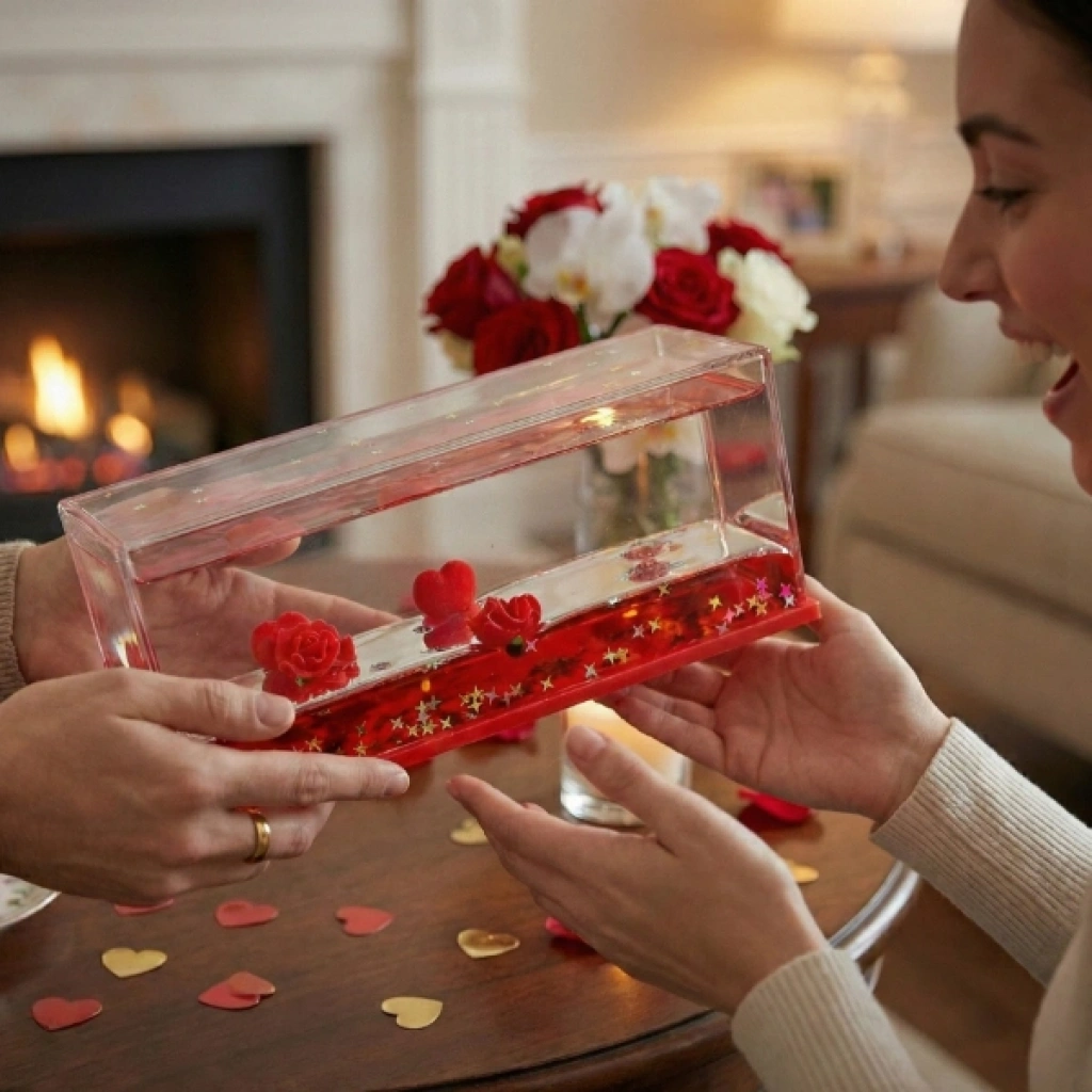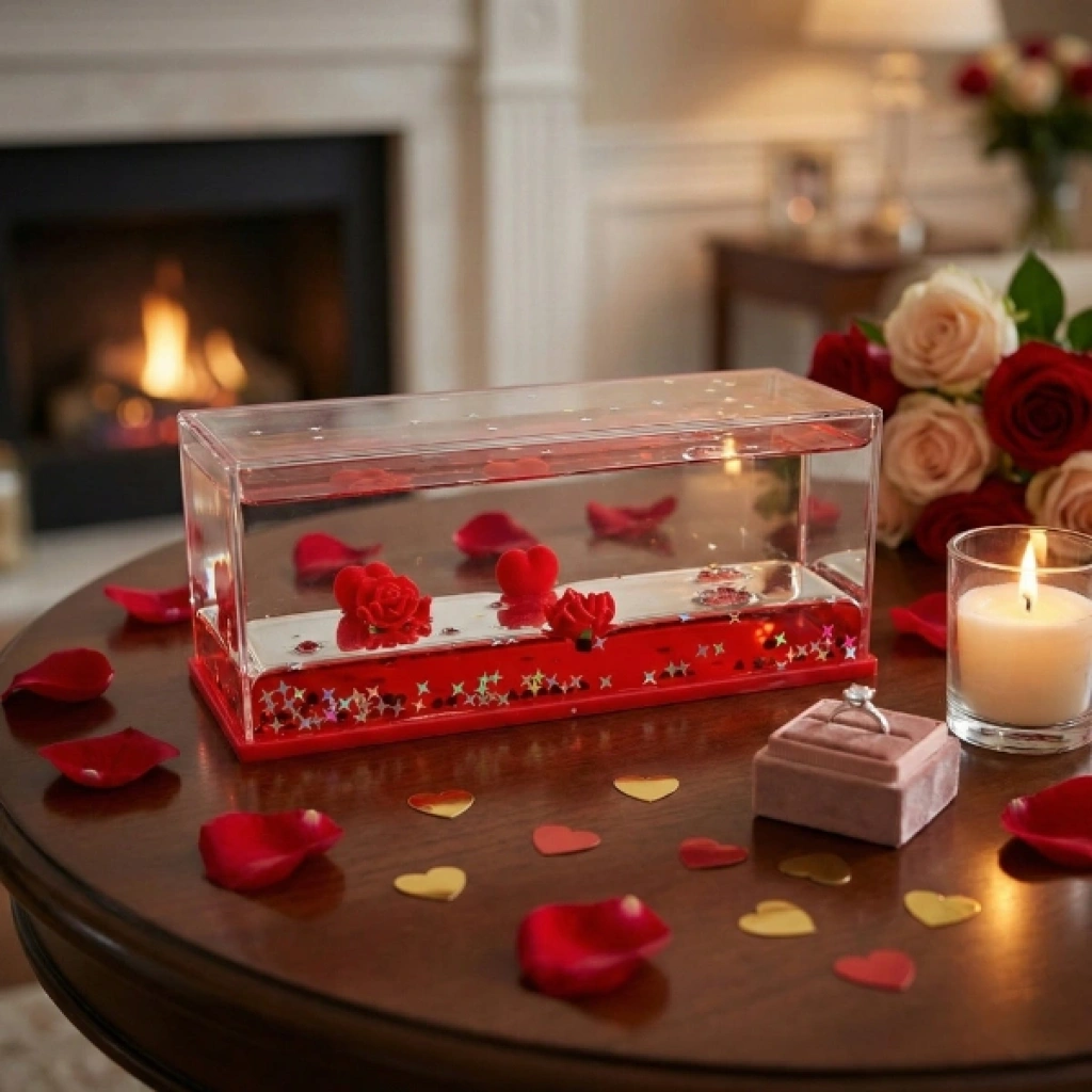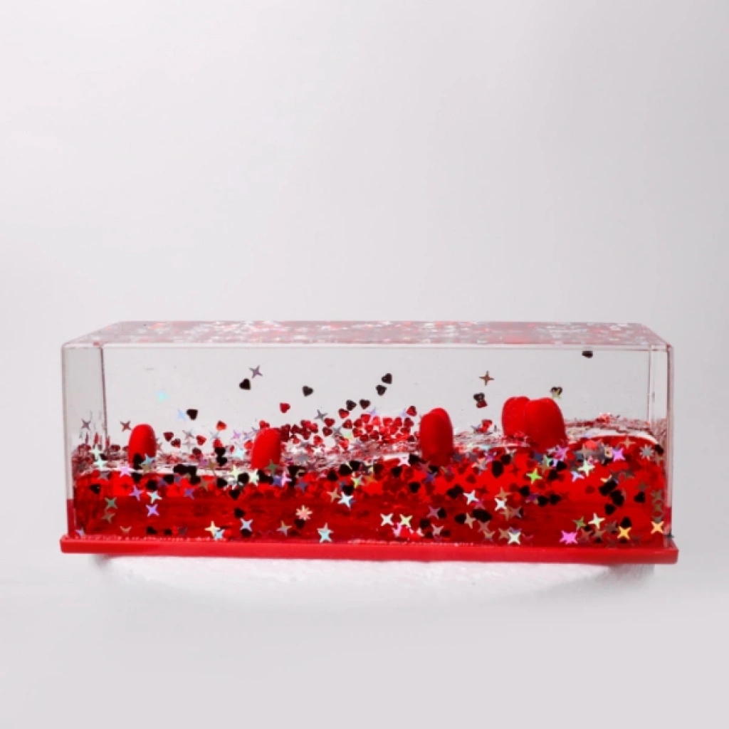 BATMAYAN KALPLİ GÜLLÜ AKVARYUM HEDİYELİKÜrün ÖzellikleriBatmayan kalpli güllü akvaryum hediyelik, romantik ve anlamlı tasarımıyla özel günlerde sevdiklerinize unutulmaz bir hediye alternatifi sunar. Şeffaf akvaryum görünümüne sahip bu dekoratif ürün, su içerisinde batmadan duran kırmızı kalpler ve güller sayesinde göz alıcı bir görsellik oluşturur. İç mekân dekorasyonunda sehpa, masa, vitrin veya raf üzerinde rahatlıkla kullanılabilir ve bulunduğu ortama sıcak, romantik bir hava katar. Estetik detayları sayesinde Sevgililer Günü, evlilik teklifi, yıl dönümü, doğum günü ve özel sürprizler için ideal bir seçimdir. Dayanıklı yapısı uzun süreli kullanım imkânı sunarken, bakım gerektirmeyen dekoratif formu ile zahmetsiz bir şekilde sergilenebilir. Hediyelik olarak tercih edildiğinde duygusal değeri yüksek, şık ve dikkat çekici bir ürün olarak öne çıkar.Paket İçeriği1 adet Batmayan Kalpli Güllü Akvaryum Hediyelik
