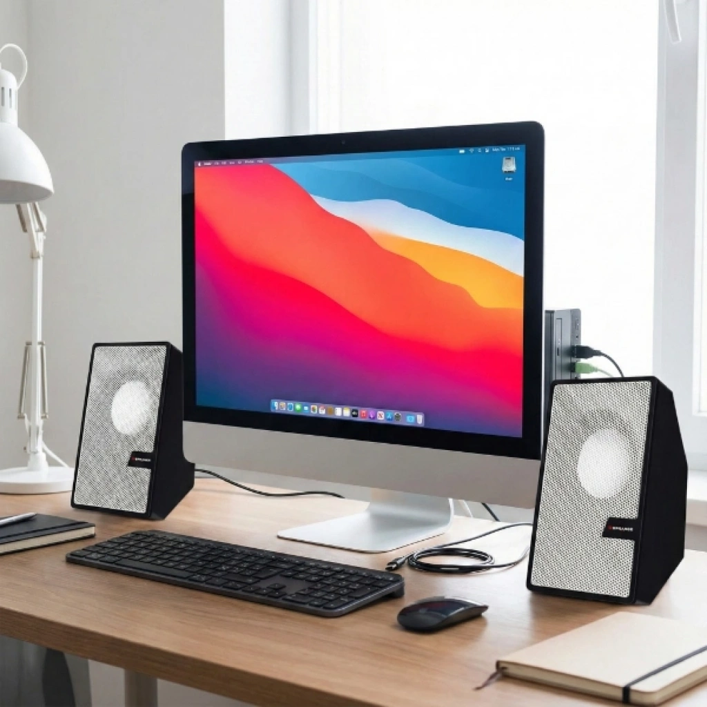BEYAZ USB 2.0 + 3.5MM USB HOPARLÖR Ürün ÖzellikleriBeyaz USB 2.0 + 3.5mm 1+1 PC Hoparlör, bilgisayar, laptop ve diğer uyumlu cihazlarda net ve güçlü ses deneyimi sunar. 3.5 mm ses girişi sayesinde tüm cihazlarla kolay bağlantı sağlarken USB 2.0 kablosu hoparlörün enerji ihtiyacını karşılar ve ekstra adaptör gerektirmez. 2x3W ses çıkış gücü odanızda dengeli bir ses performansı sunarak film izleme, müzik dinleme veya oyun oynama sırasında tatmin edici bir deneyim oluşturur.Kompakt tasarımı sayesinde masaüstünde fazla yer kaplamaz, beyaz ön yüz tasarımı ile modern bir görünüm sağlar. Üzerindeki ses kontrol düğmesiyle sesi hızlı ve pratik şekilde ayarlayabilirsiniz. Şık, hafif ve kullanışlı yapısıyla günlük kullanımda ideal bir ses çözümüdür.Paket İçeriği1 Takım (2 Adet) USB + 3.5mm 1+1 PC Hoparlör