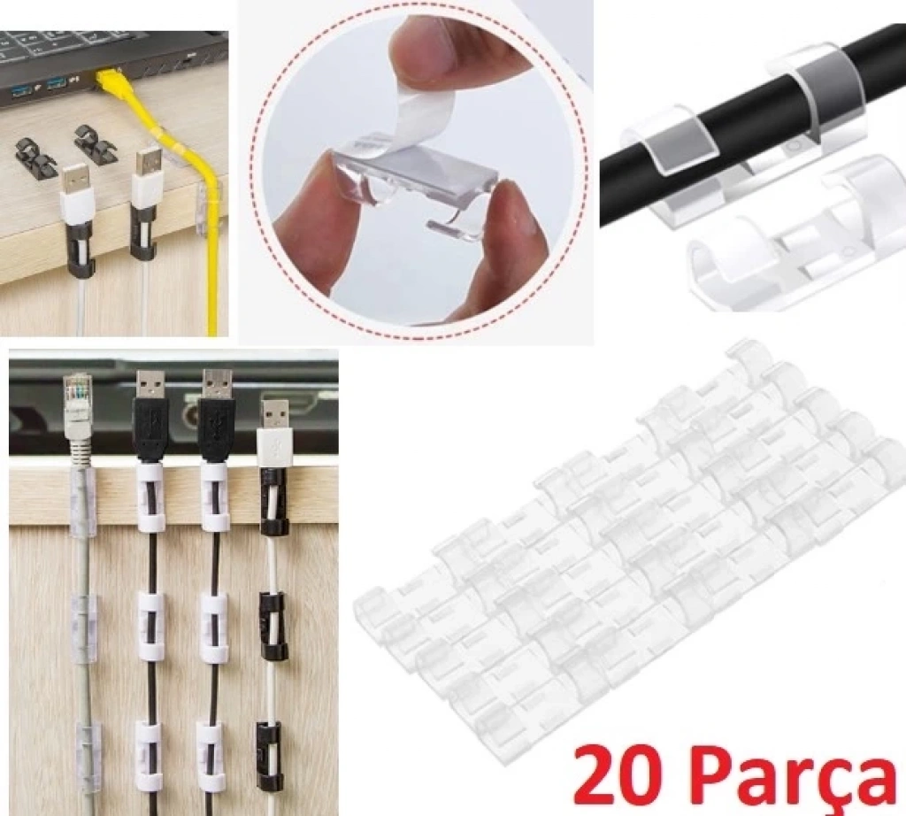 BFS 20'li Yapışkanlı Kablo Sabitleyici Şeffaf Klips