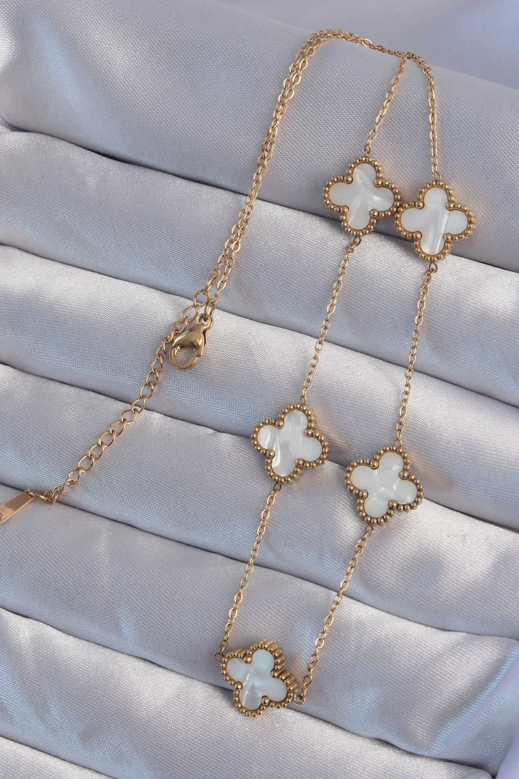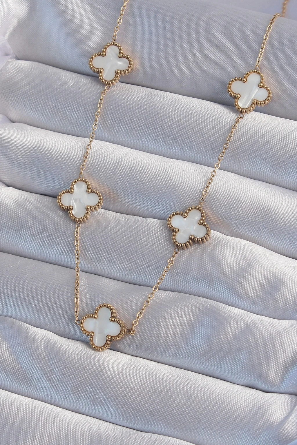 BFS 316L Çelik Gold Renk Beyaz Sedefli Yonca Kolye