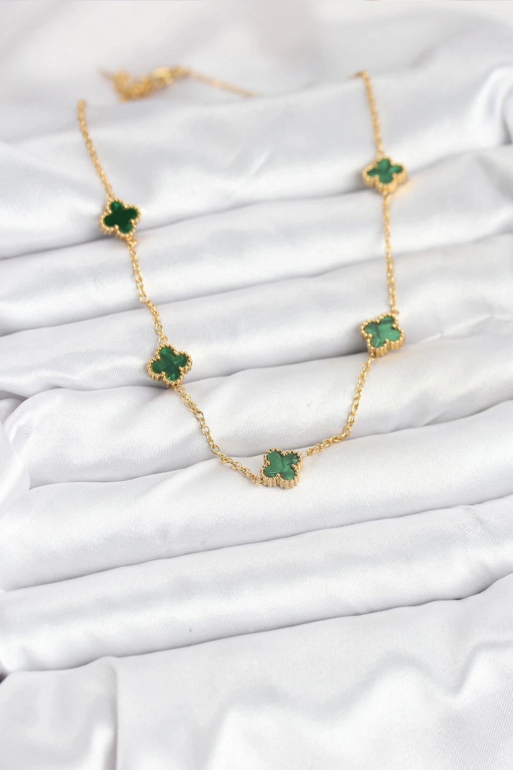 BFS 316L Çelik Zincir Gold Renk Yeşil Baby Boy Yonca Kadın Kolye