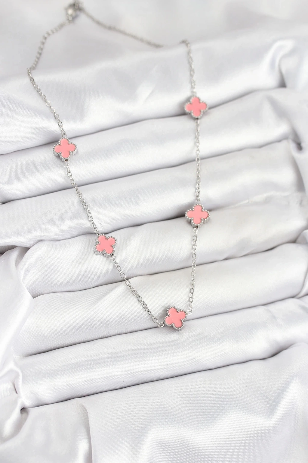 BFS 316L Çelik Zincir Gümüş Renk Pembe Baby Boy Yonca Kadın Kolye