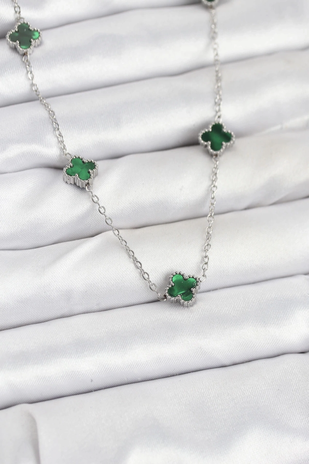 BFS 316L Çelik Zincir Gümüş Renk Yeşil Baby Boy Yonca Kadın Kolye