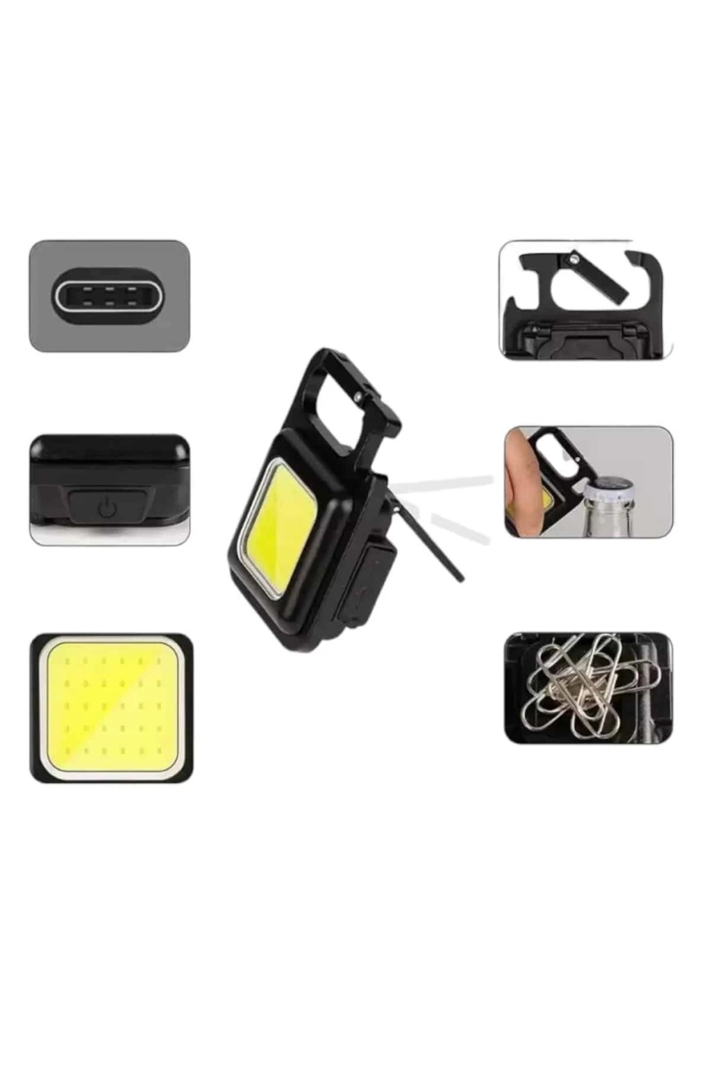 BFS USB Type-C Şarjlı Mini Fener – Manyetik, Katlanabilir ve Şişe Açacaklı Tasarım