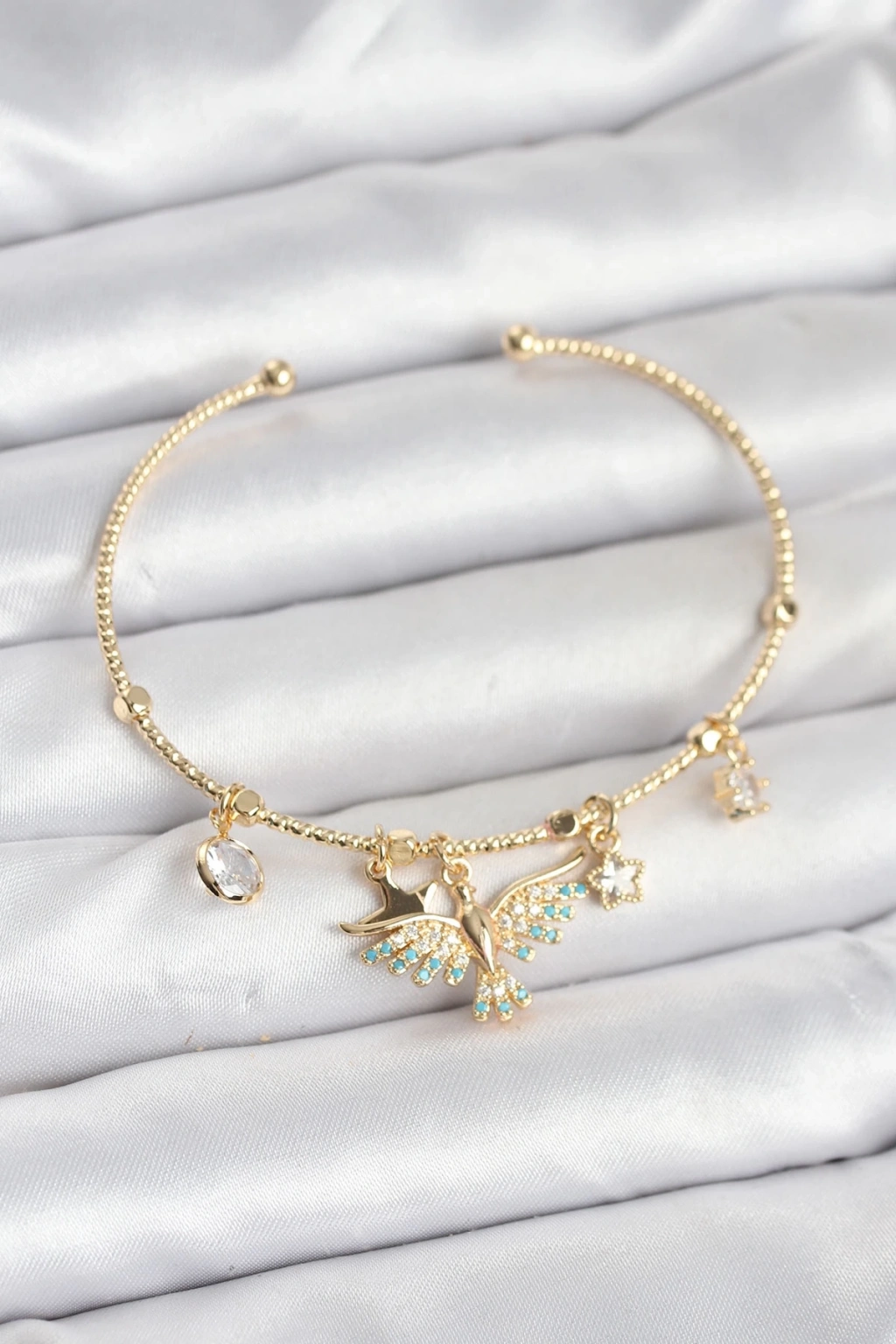 BFS Anka Kuşu Charmlı Gold Renk Pirinç Kadın Bileklik