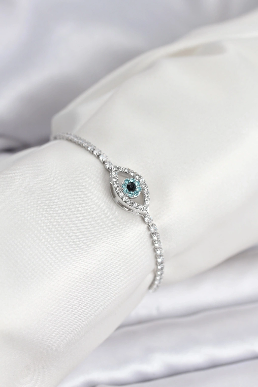 Mey İthalat® Göz Model Zirkon Taşlı Gümüş Renk Asansörlü Su Yolu Bileklik