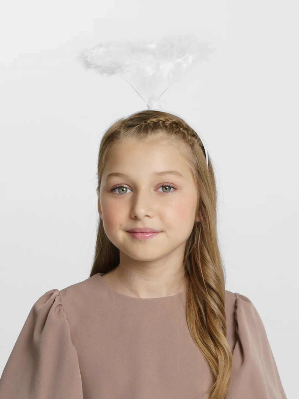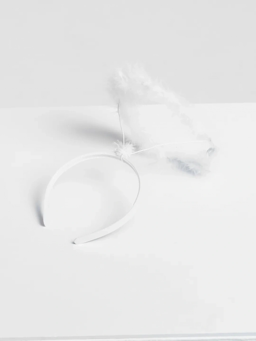 BFS Beyaz Renkli Tüylü Bebek Melek Kanadı ve Tacı 30x45 cm