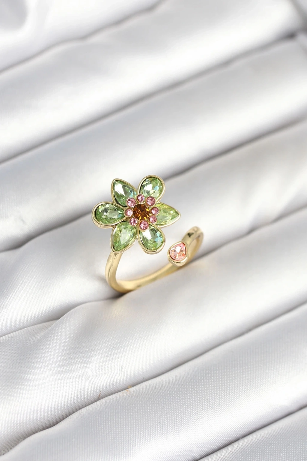BFS Çiçek Model Yeşil Pirinç Gold Renk Yüzük