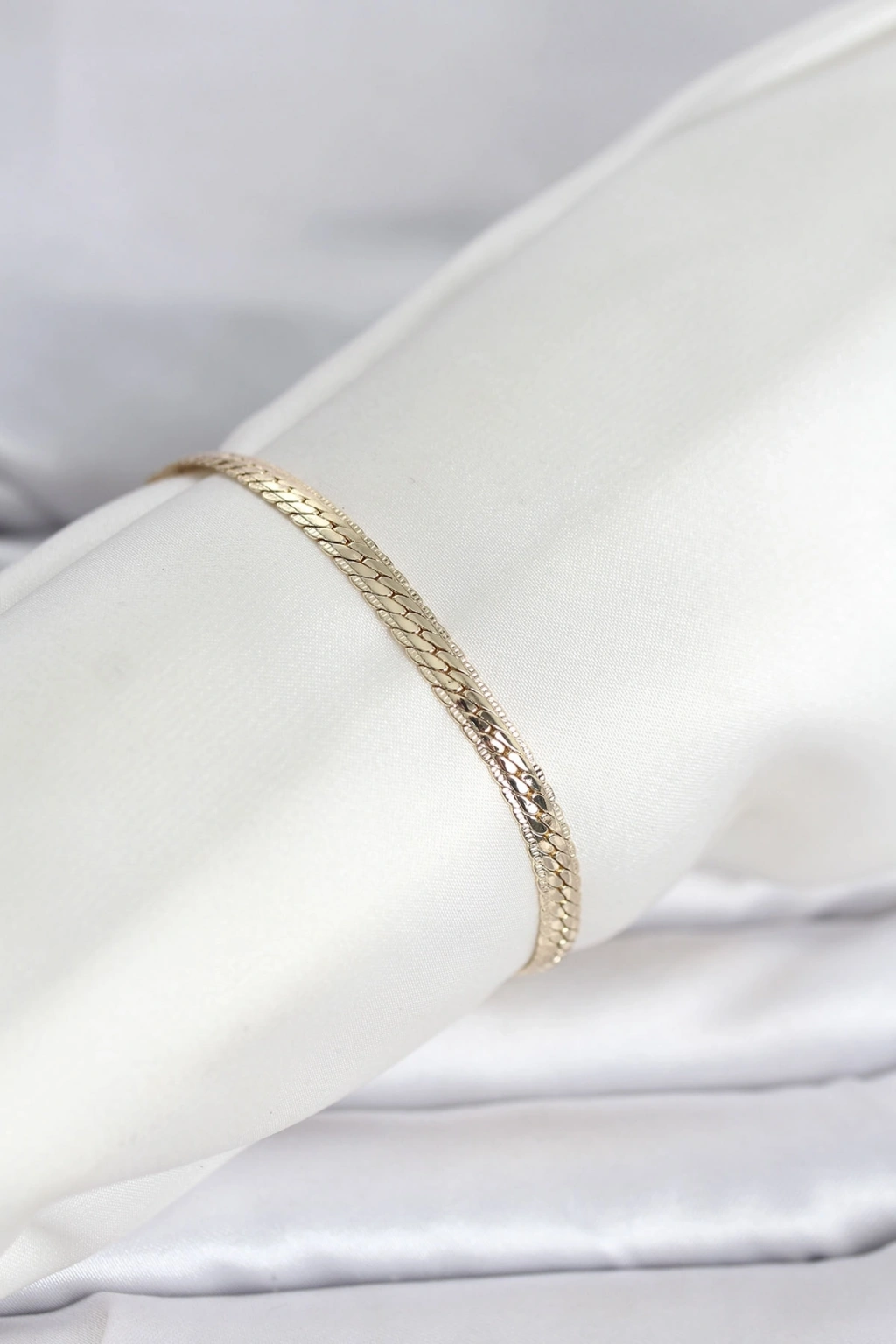Mey İthalat® CM 14K Gold Renk Lazerli Yassı Zincir Model Kadın Bileklik