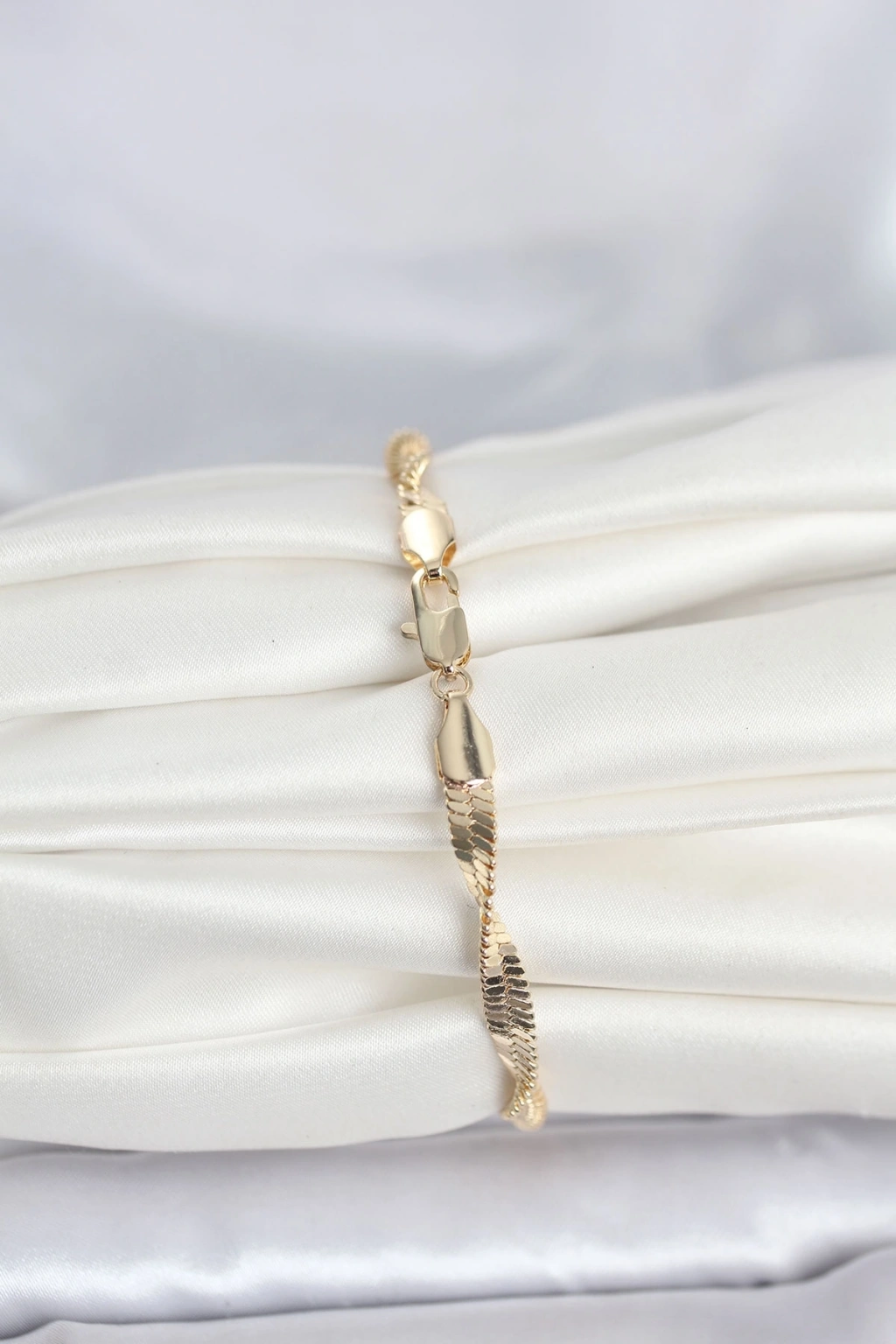 Mey İthalat® CM 14K Gold Renk Zincir Kalın Yassı Ezme Burgu Model Kadın Bileklik