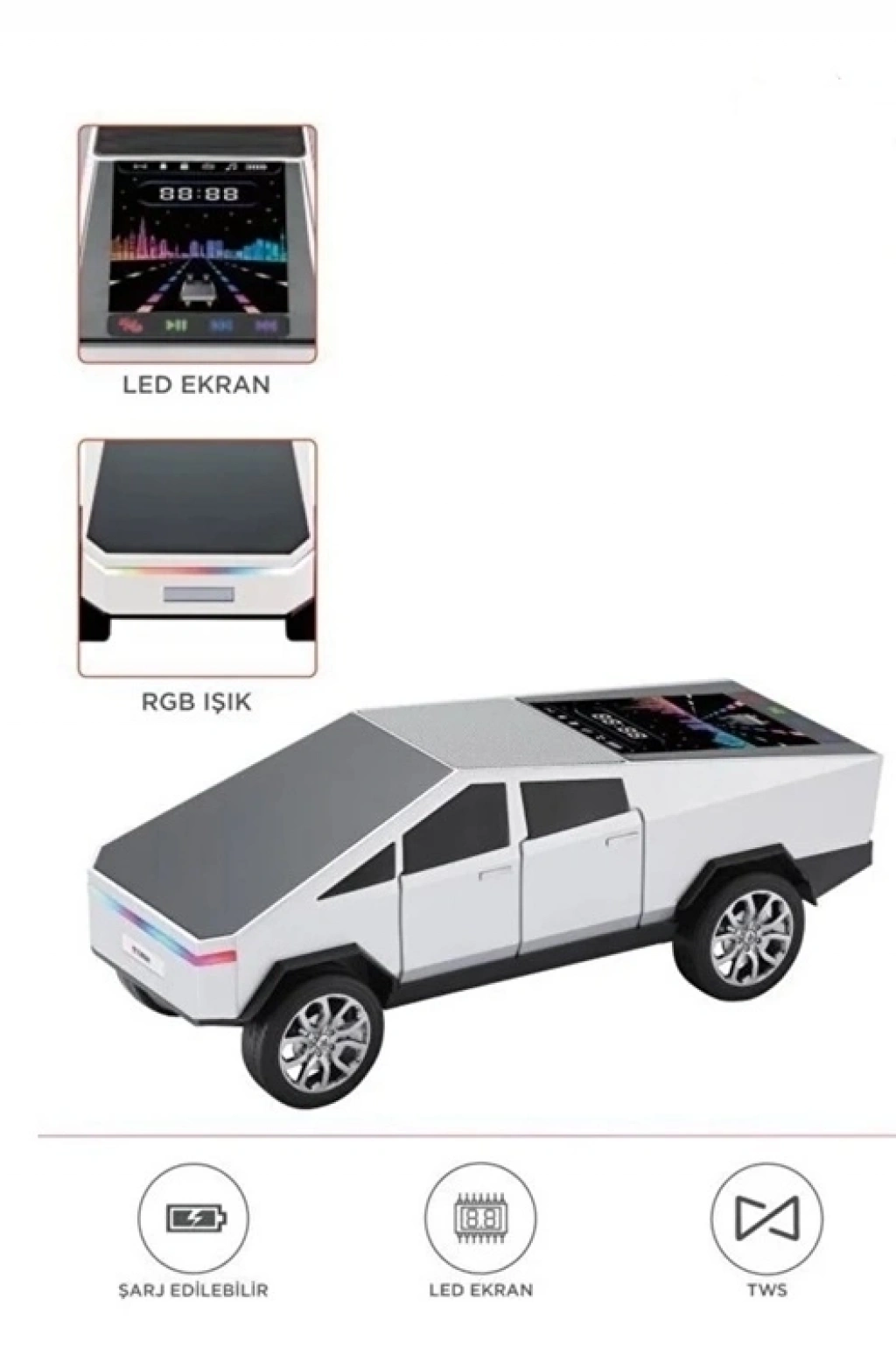 BFS D68 Cyber Model Araba Tasarımlı Bluetooth Hoparlör 15w Güçlü Ses Rgb Led /tws/usb Beyaz