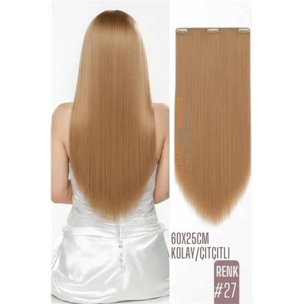 BFS Doğal Görünümlü Düz Siyah Sentetik Kaynak Saç – RENK KOD:#27 Kolay Tak Çıkar, Işıltılı Etki!