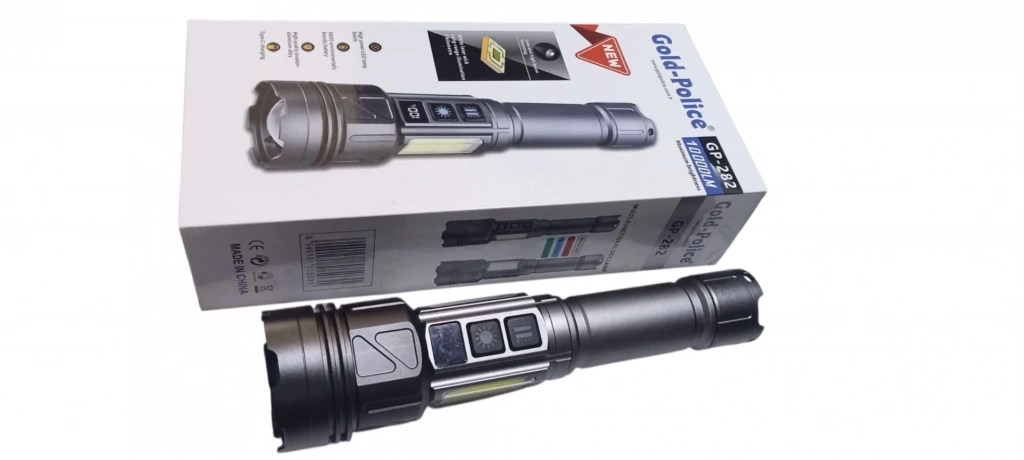 BFS Gold-police Gp-282 Uzun Menzilli Güçlü Şarjlı 10000 Lümen El Feneri 11 Mod Çakar Işıklı Kırmızı-mavi-yeşil Led