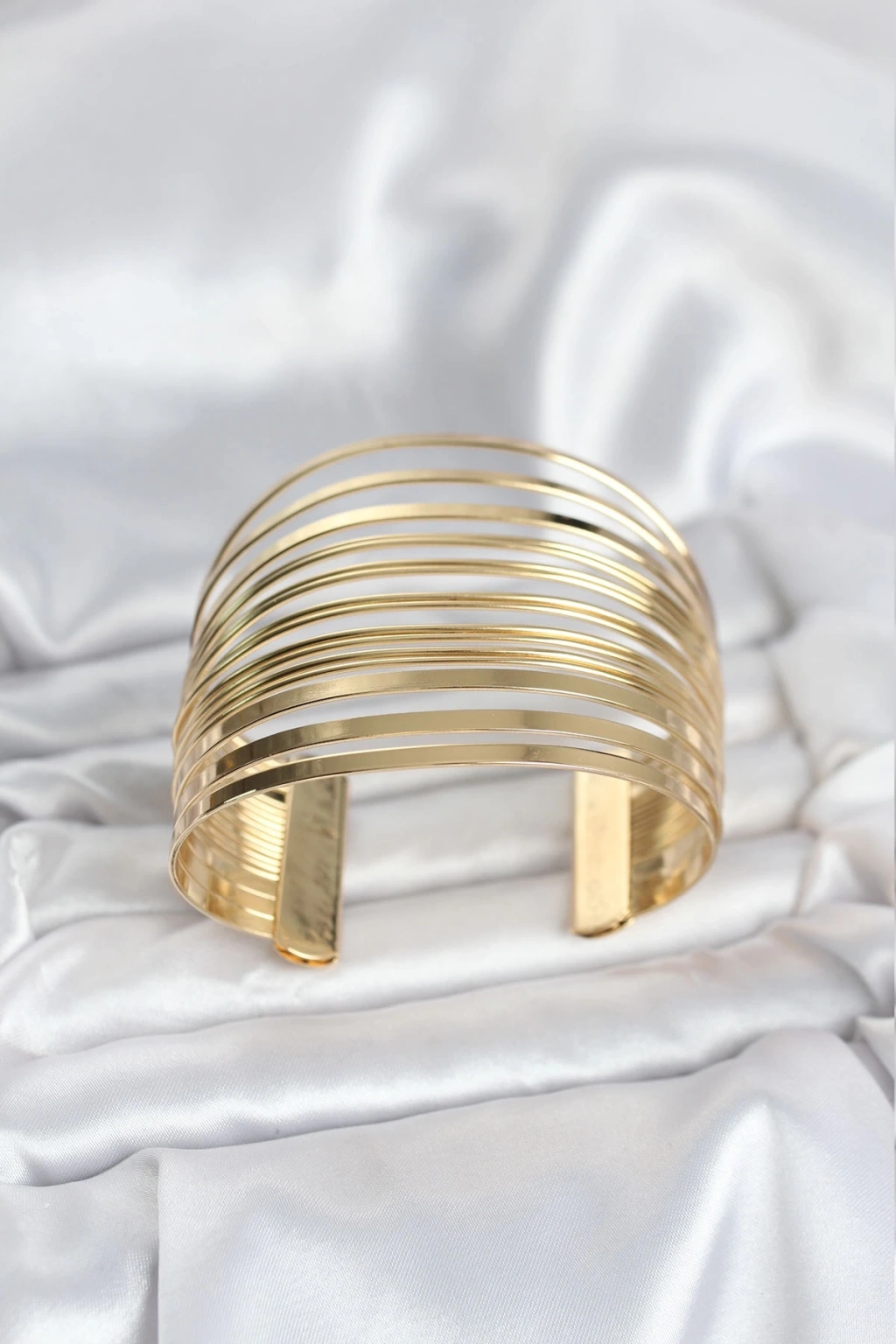 BFS 316L Çelik Gold Renk Vintage Kadın Kelepçe Bileklik