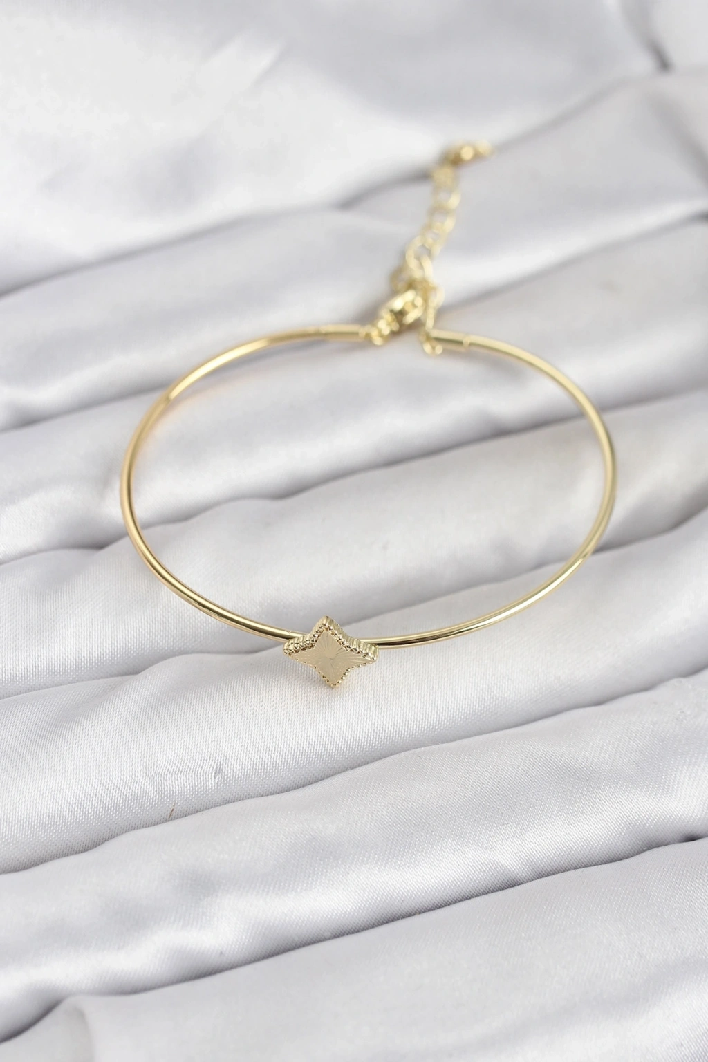 Mey İthalat® Gold Renk Pirinç Köşeli Yonca Model Kadın Bileklik