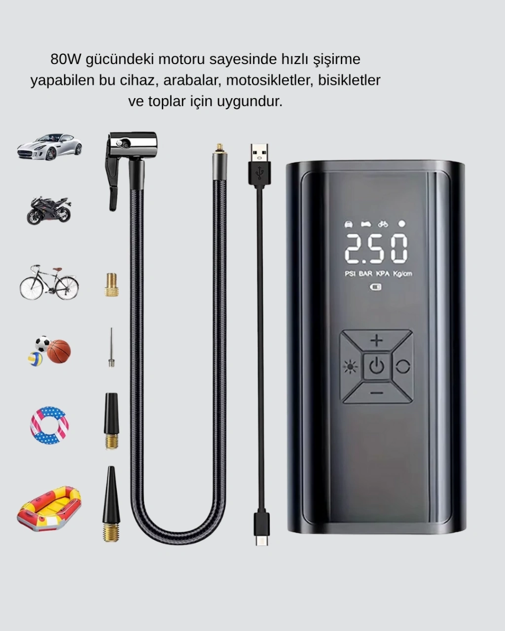 BFS Kablosuz Dijital Lastik Şişirme Pompası LED Işıklı 80W