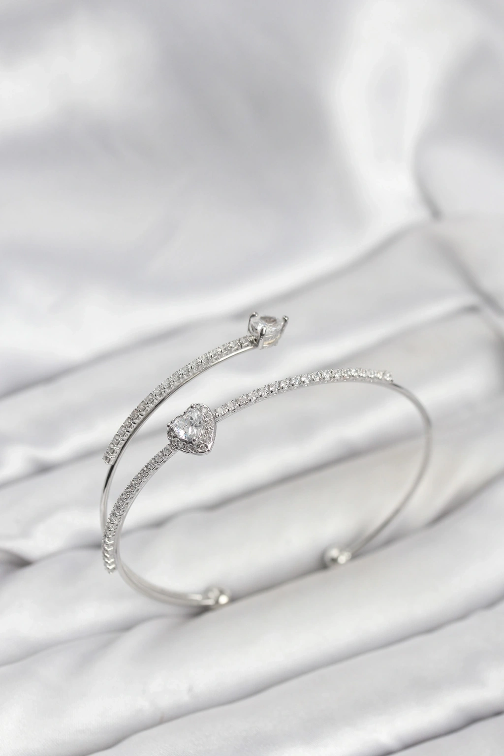 Mey İthalat® Kalp Model Pirinç Gümüş Renk Kadın Bileklik