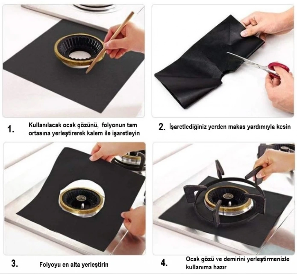 BFS Ocak Koruyucu Folyo Yanmaz Yapışmaz 4'lü Set SiYAH
