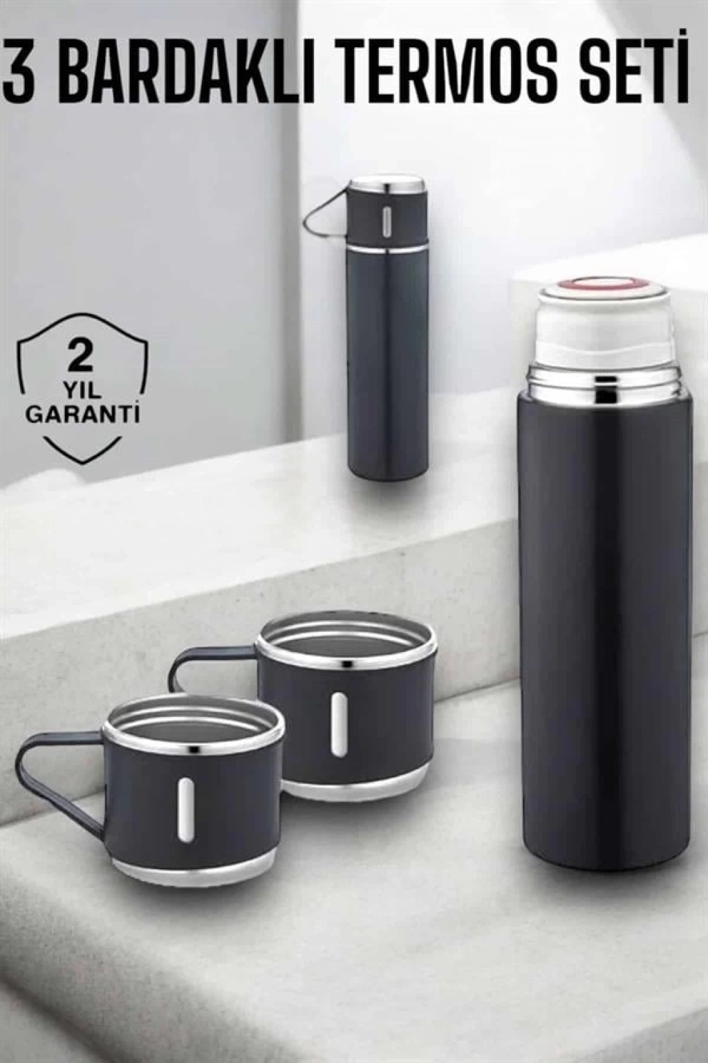 BFS Şık ve Dayanıklı 3 Bardaklı Termos Seti Uzun Süre Isı Koruma Özellikli