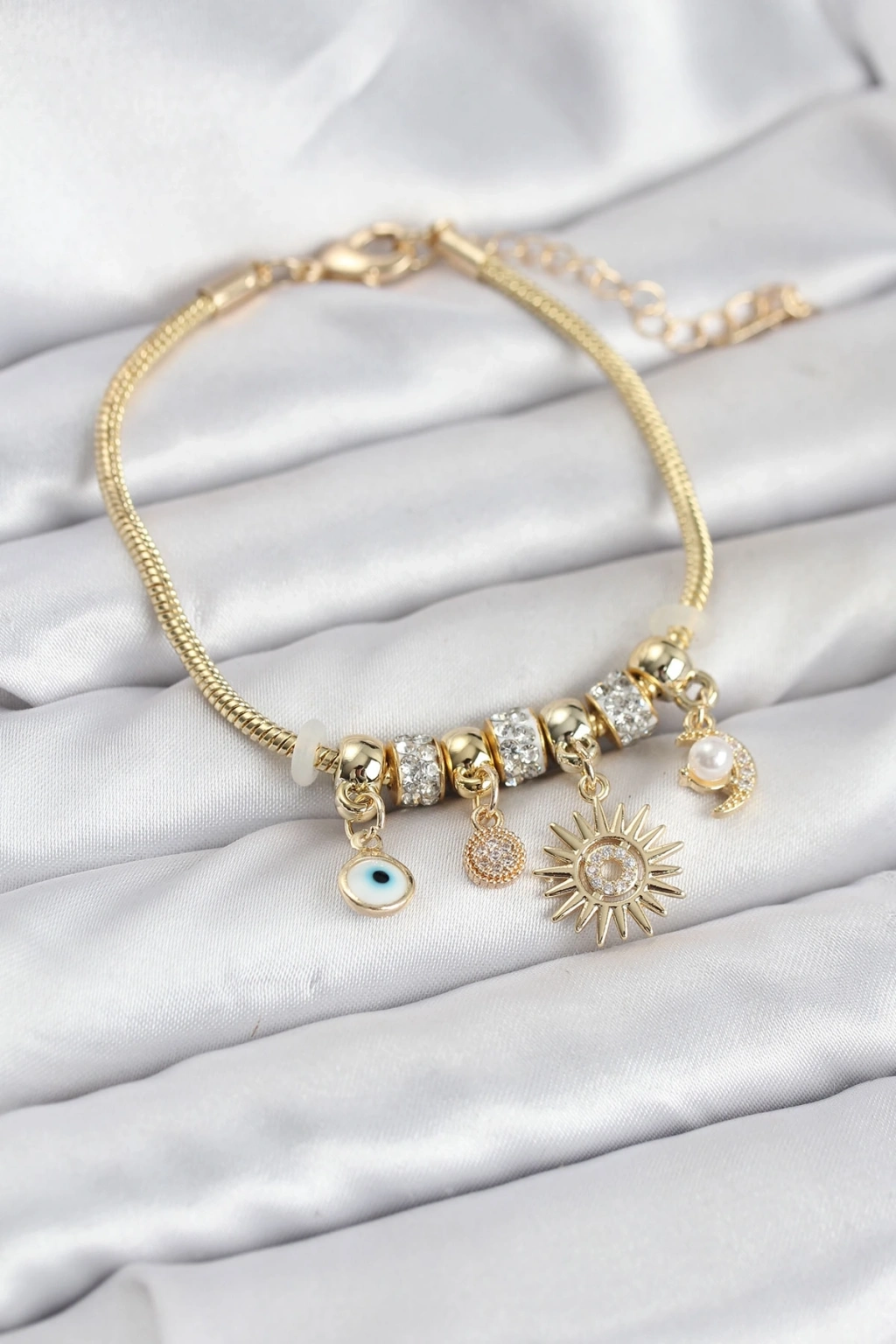 Mey İthalat® Pirinç Gold Renk Güneş Charmlı Kadın Bileklik