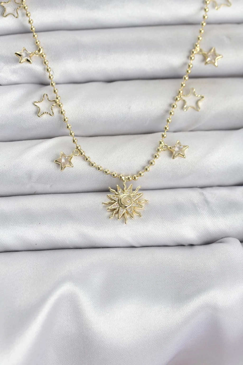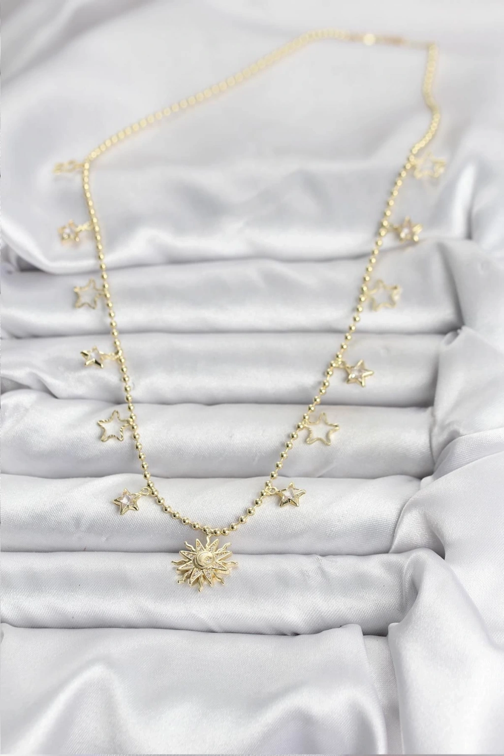 BFS Pirinç Gold Renk Zirkon Taşlı Kutup Yıldızı Model Kadın Kolye