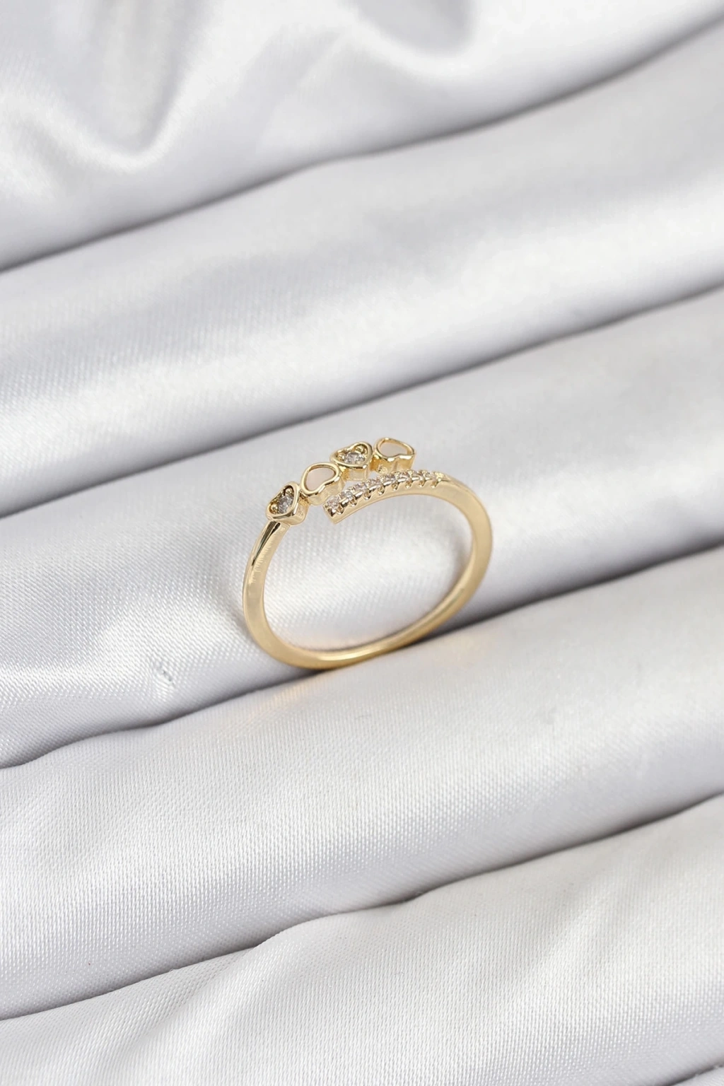 BFS Pirinç Gold Renk Kalpli Detaylı Zirkon Taşlı Kadın Yüzük