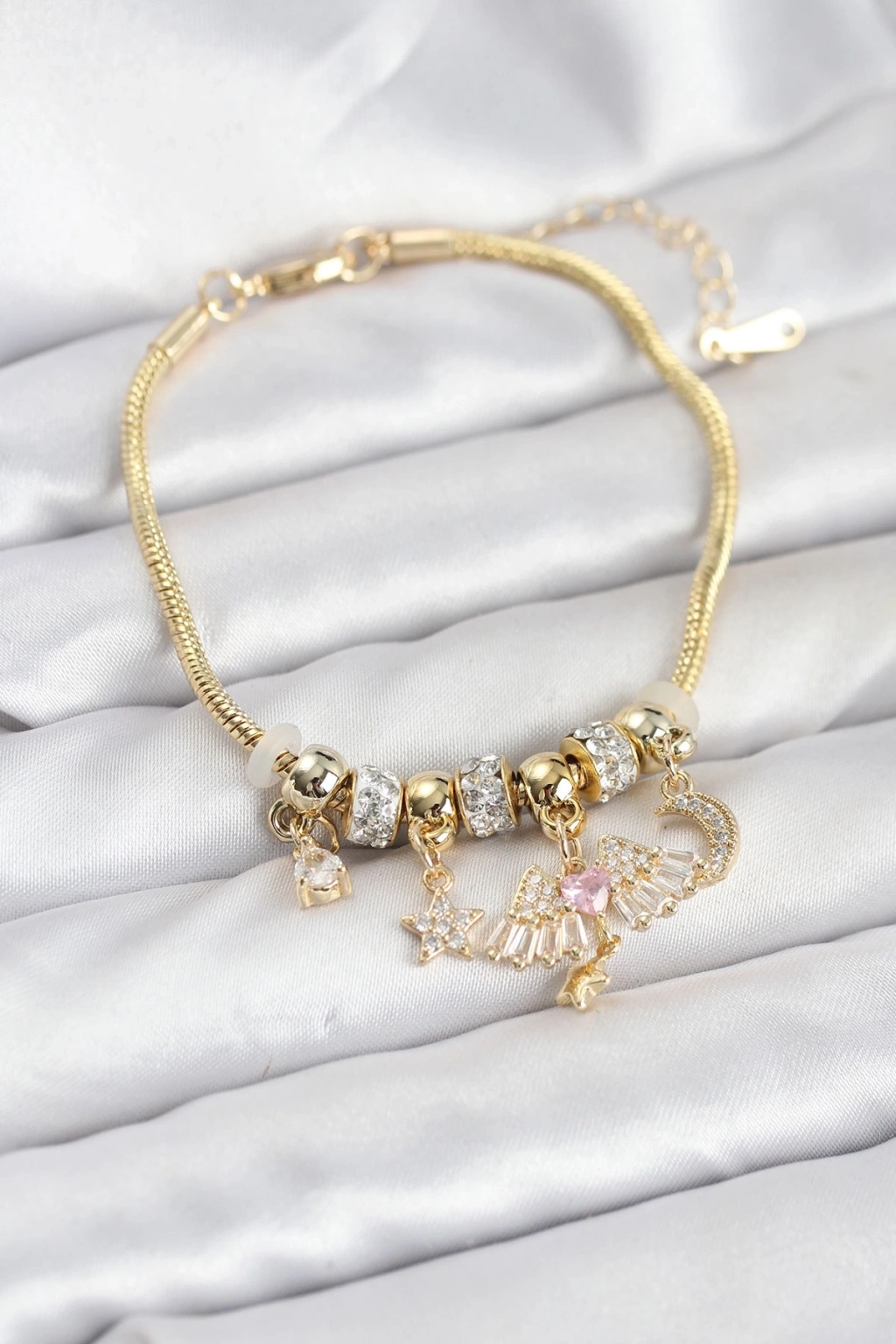 Mey İthalat® Pirinç Gold Renk Kanatlı Charmlı Kadın Bileklik