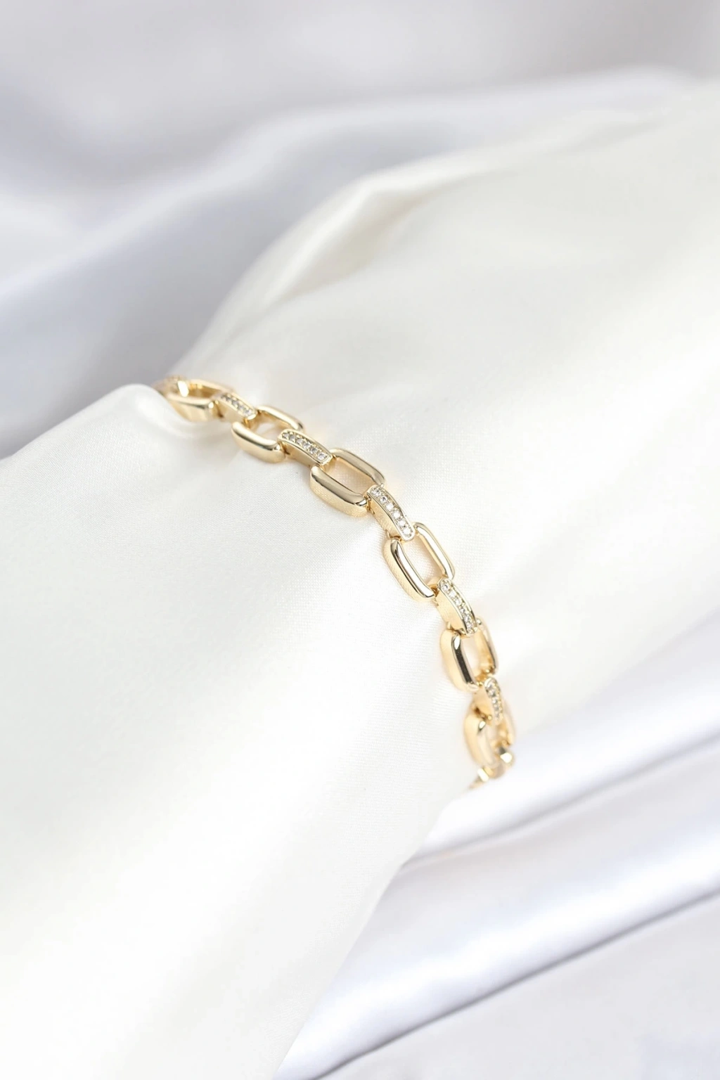 BFS Pirinç Gold Renk Kare Zincir Model Zirkon Taşlı Kadın Bileklik
