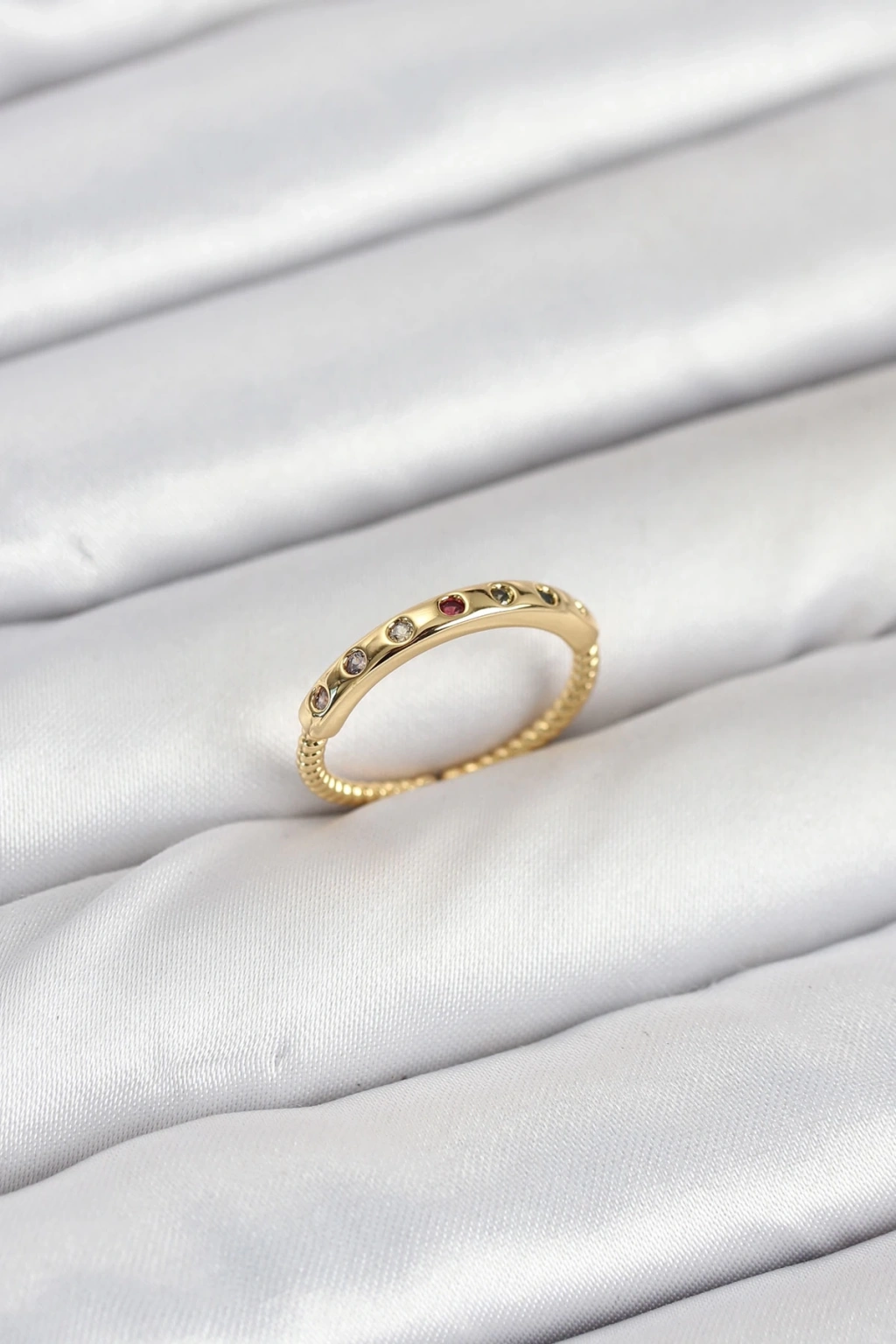 BFS Pirinç Gold Renk Renkli Zirkon Taşlı Kadın Yüzük