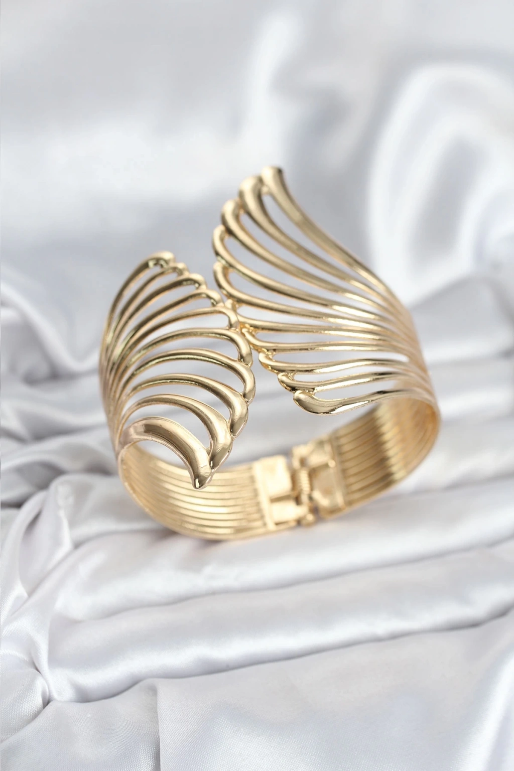 BFS 316L Çelik Gold Renk Vintage Kadın Kelepçe Bileklik