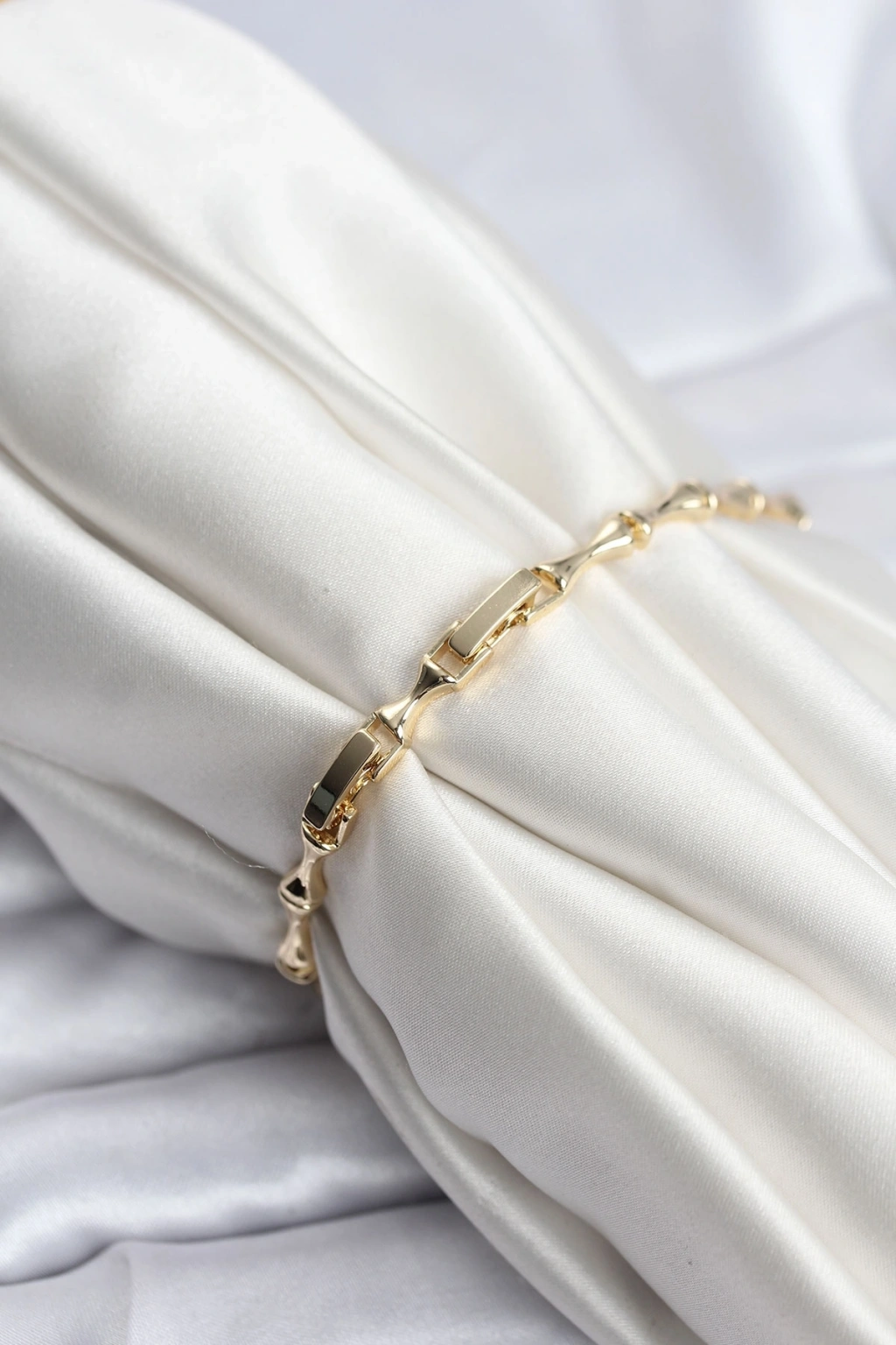 Mey İthalat® Pirinç Gold Renk VIP Seri İnce Kemik Model Zirkon Taşlı Kadın Bileklik