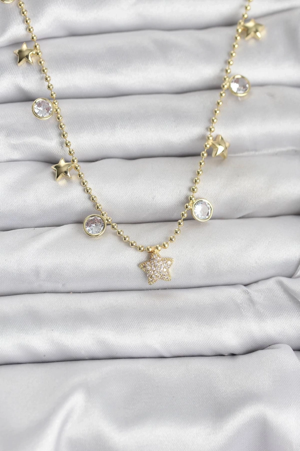 BFS Pirinç Gold Renk Zirkon Taşlı Kutup Yıldızı Model Kadın Kolye