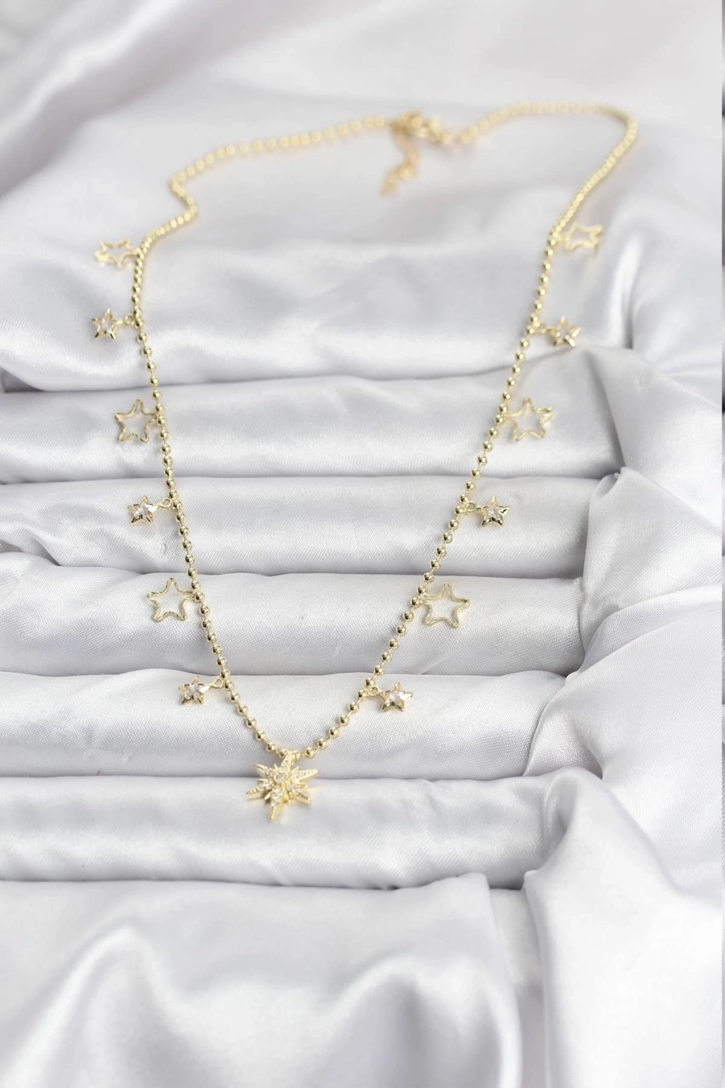 BFS Pirinç Gold Renk Zirkon Taşlı Kutup Yıldızı Model Kadın Kolye