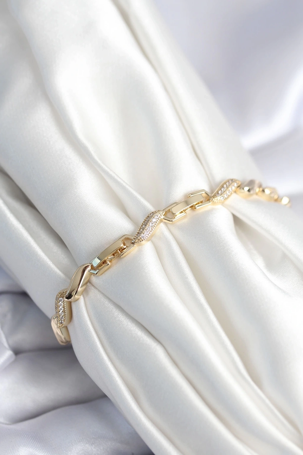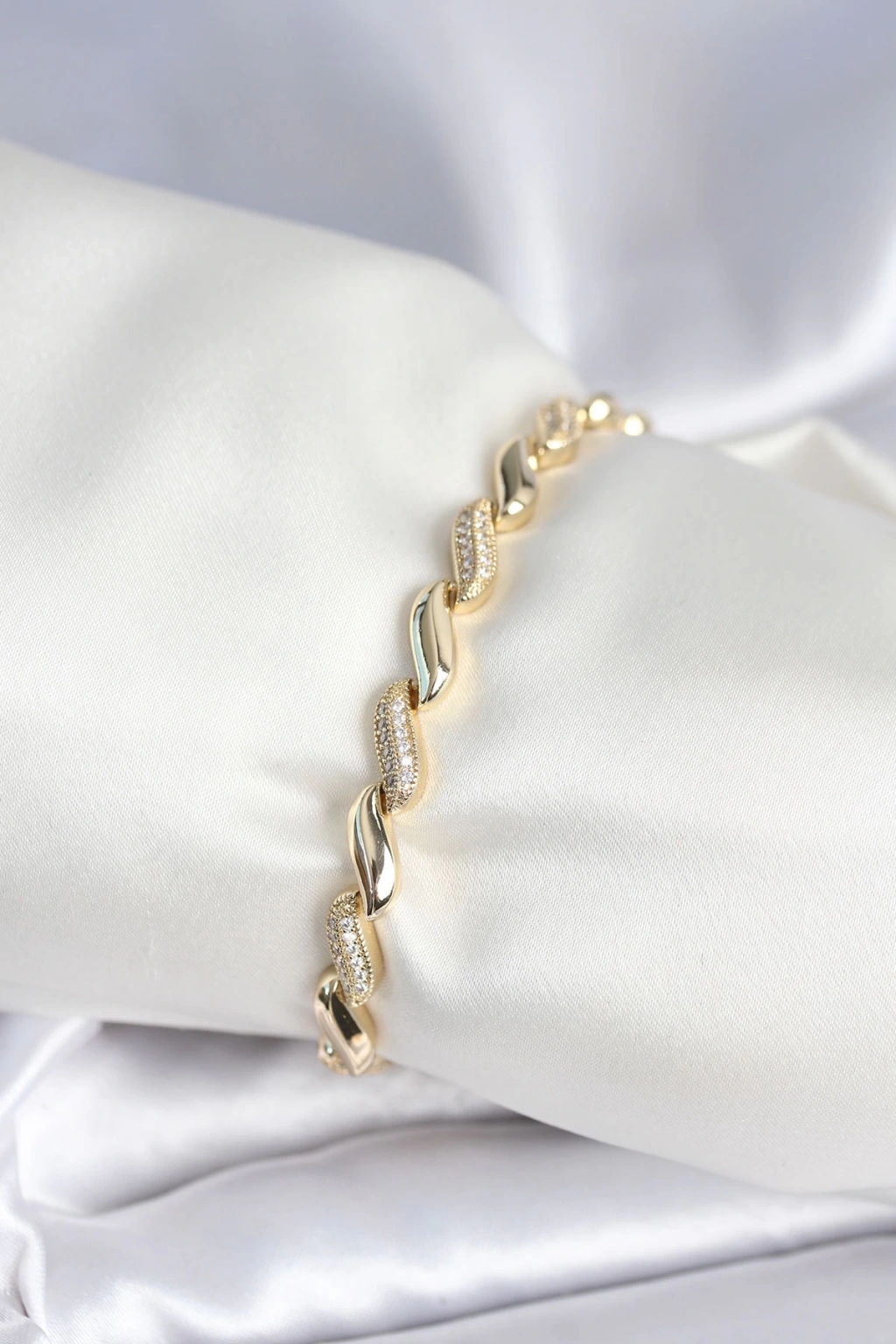 BFS Pirinç Gold Renk Zirkon Taşlı Sarmal Model Kadın Bileklik