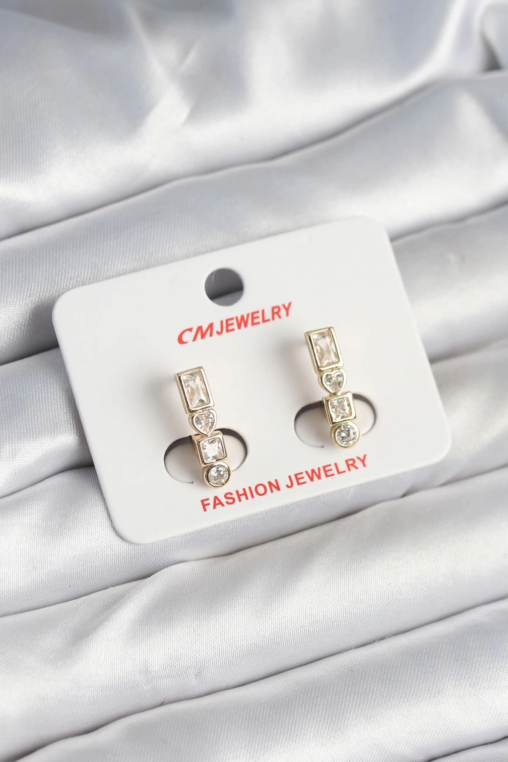 BFS 316L Çelik Gold Renk Kare Zirkon Taş Model Kadın Küpe Seti