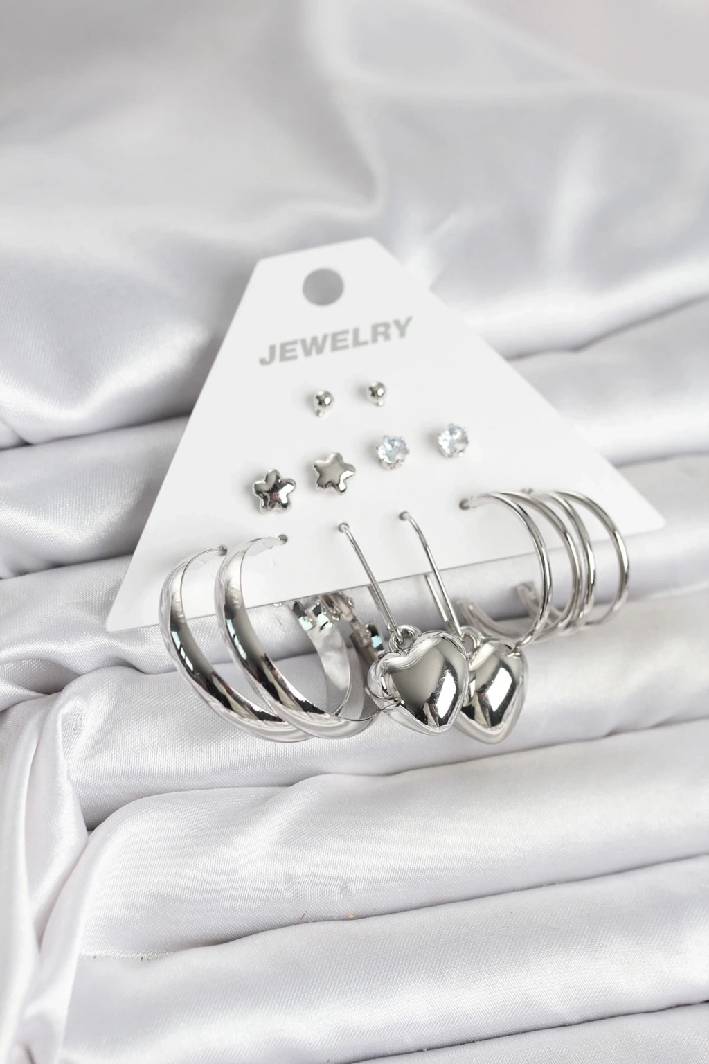 BFS Gümüş Renk Pirinç 6 Çiftli Kadın Küpe Seti