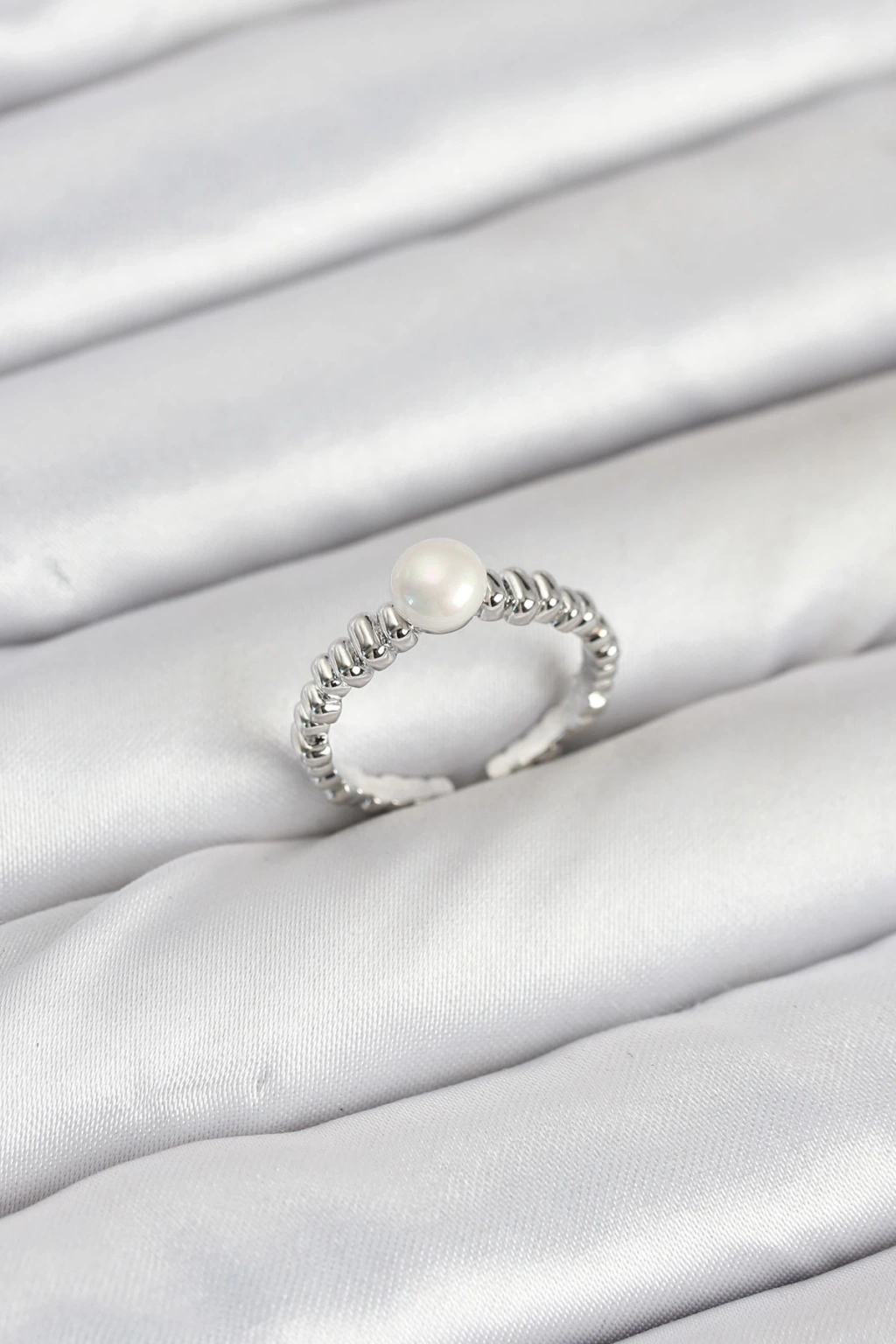 BFS Pirinç Gümüş Renk Göbek İnci Model Kadın Yüzük