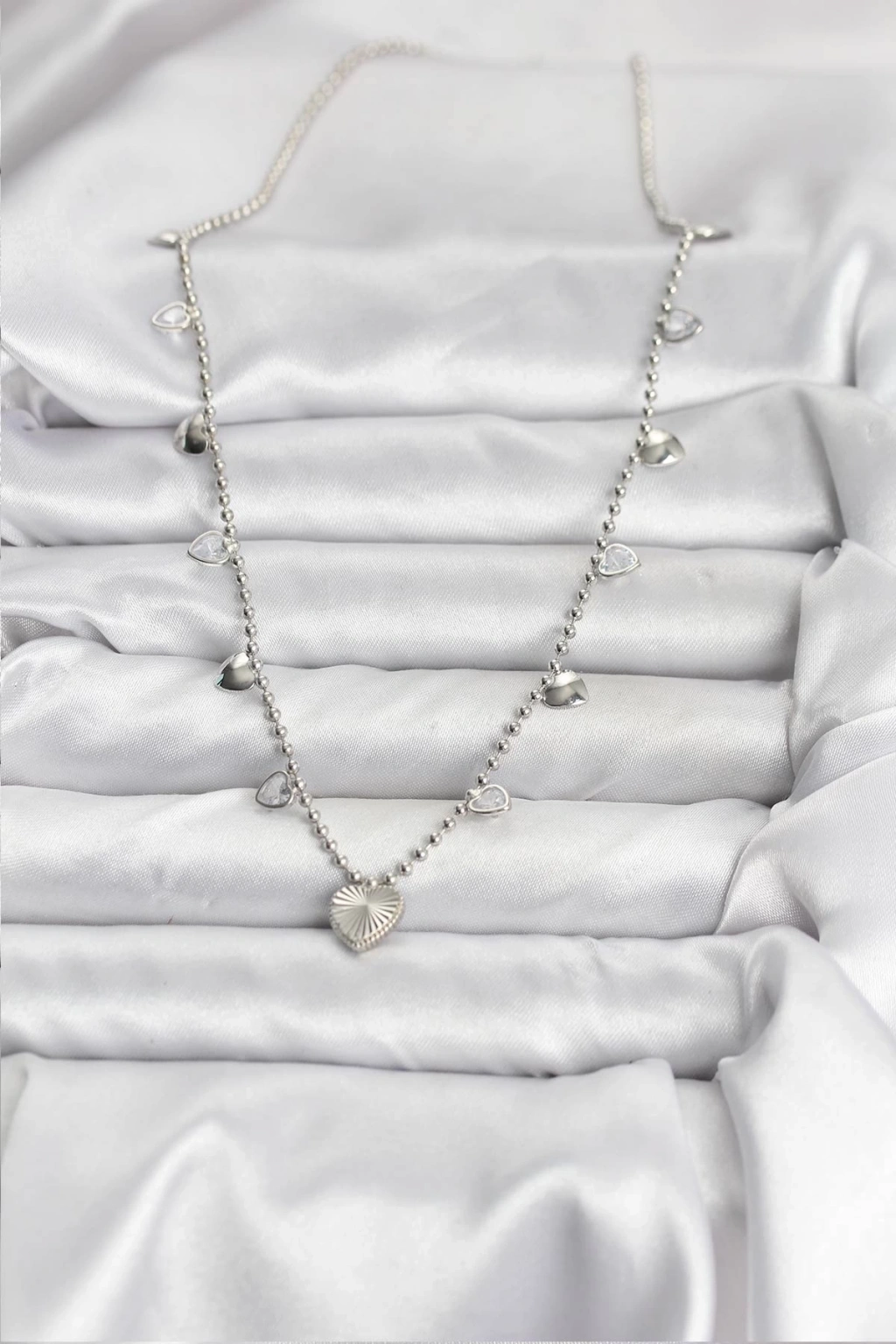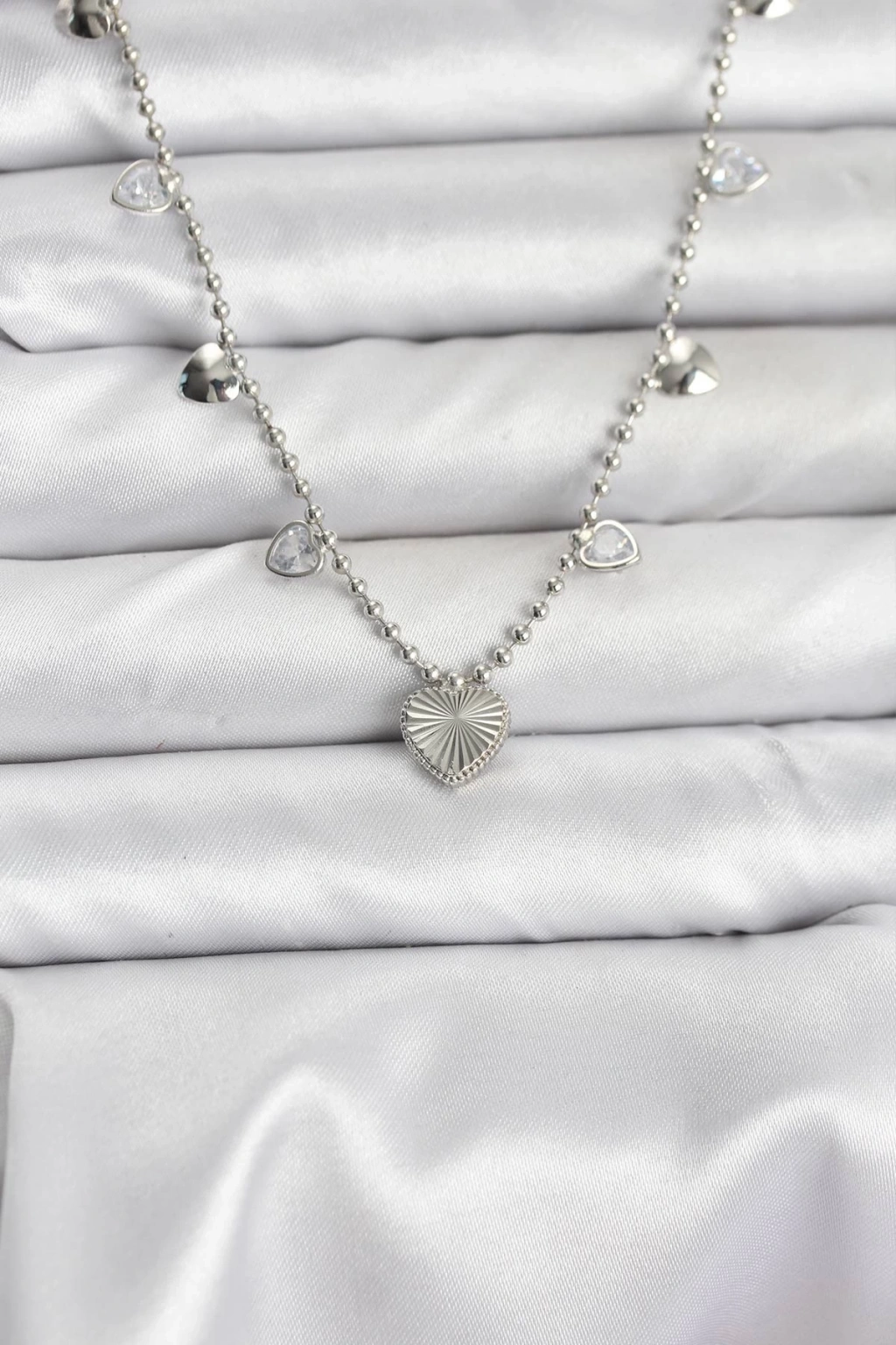 BFS Pirinç Gümüş Renk Kalp Model Kadın Kolye
