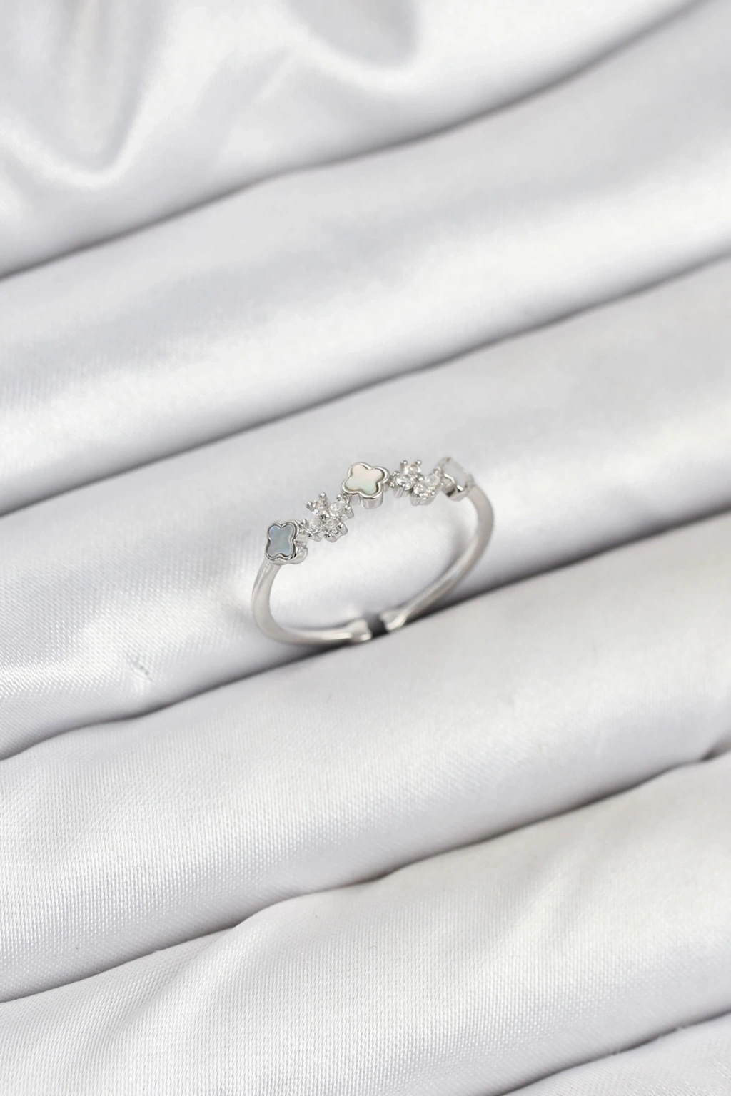 BFS Pirinç Gümüş Renk Minimal Yonca Detaylı Kadın Yüzük